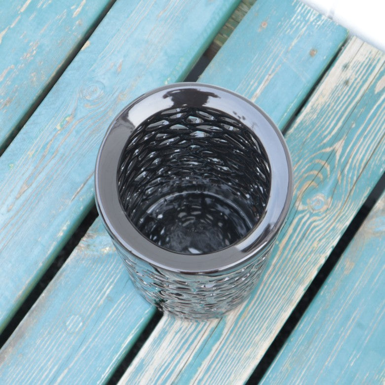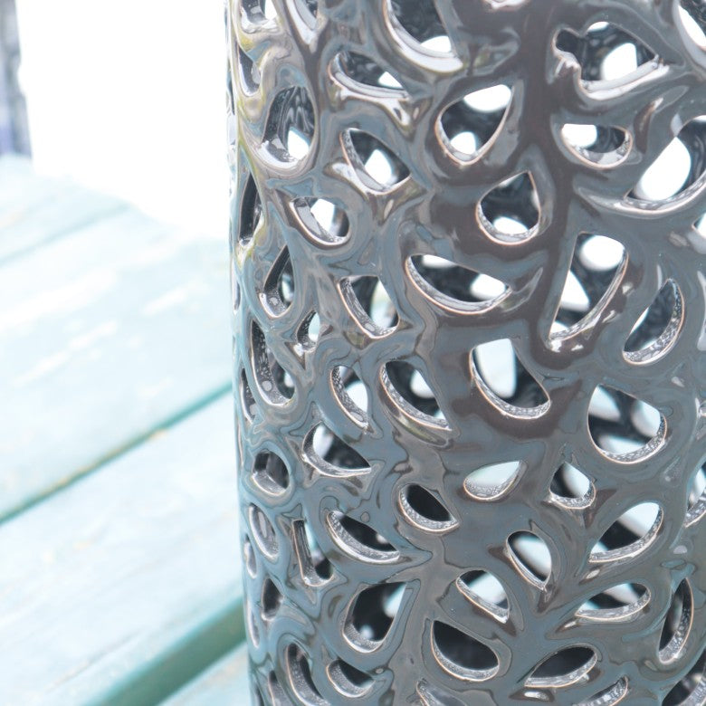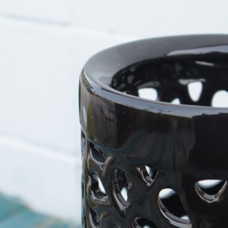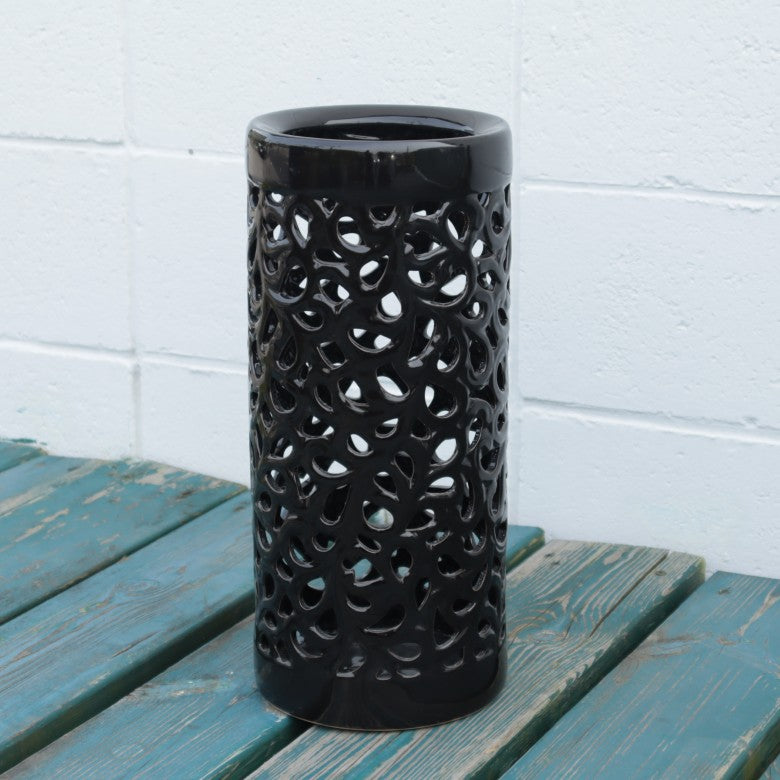 傘立て アンブレラスタンド 陶器製 透かし彫りアート ブラック モダン アート かさ立て エントランス 玄関