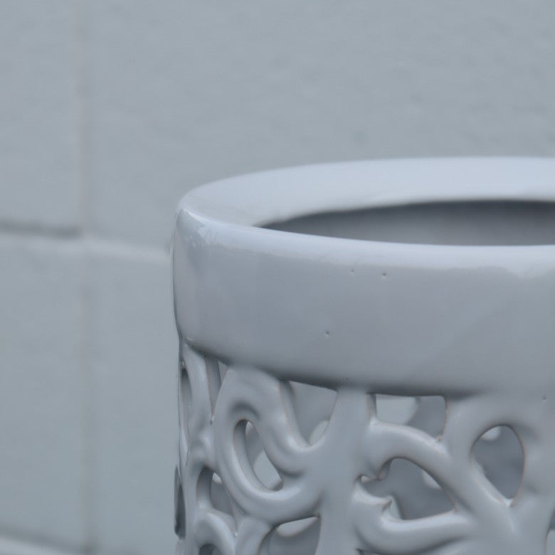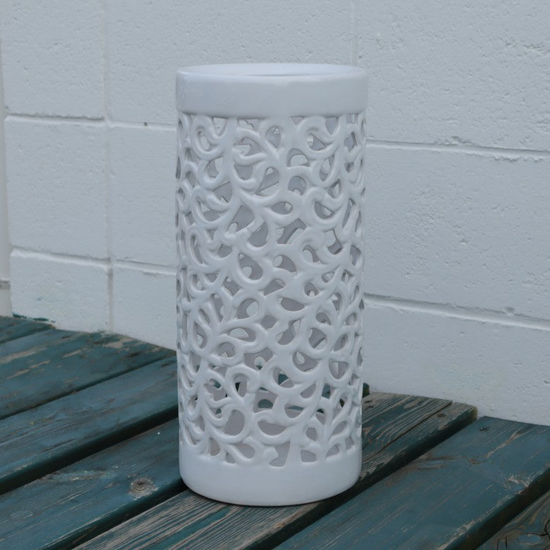 傘立て アンブレラスタンド 陶器製 透かし彫りアート ホワイト 白 モダン アート かさ立て エントランス 玄関