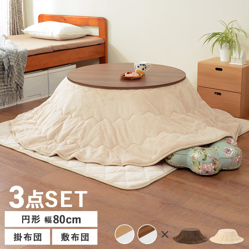 こたつセット W80cm うす掛け布団付 こたつ 3点セット アベル-SE80-ユイ 円形 丸型 こたつ布団セット コタツ おしゃれ かわいい