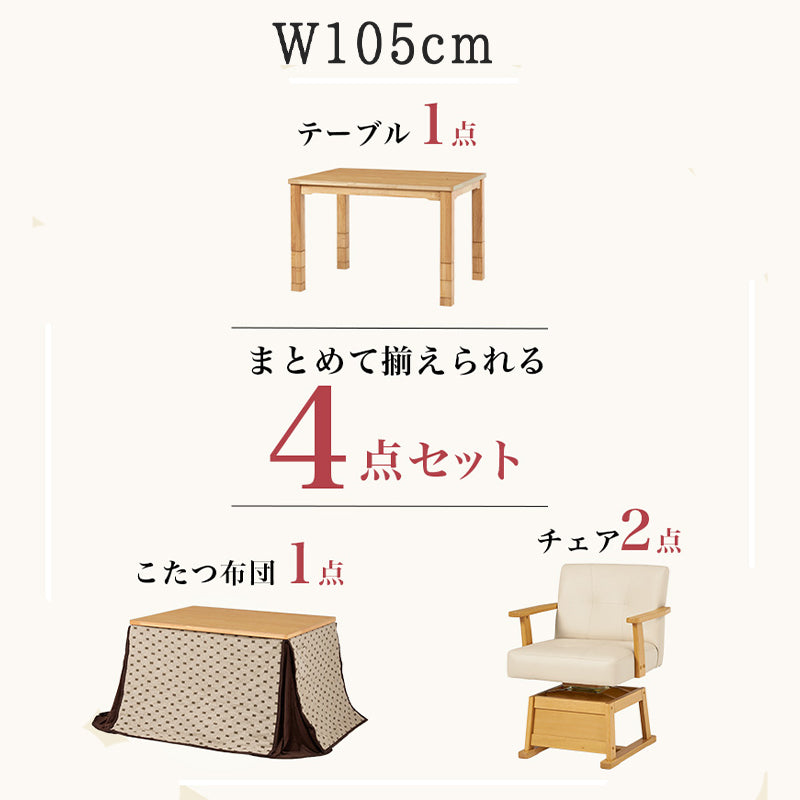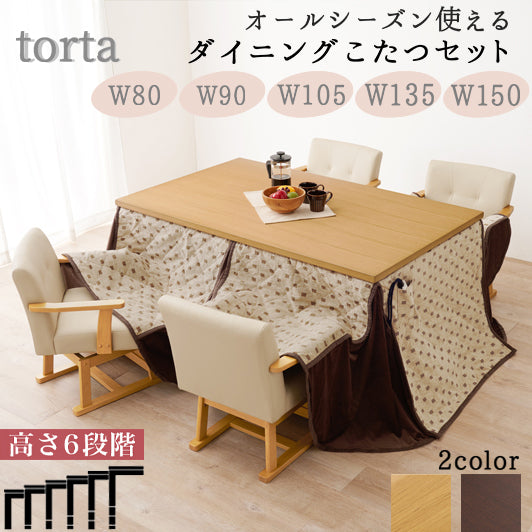 ダイニングコタツ セット おしゃれ こたつ トルタ 天然木 継脚 高さ調整可能 ハロゲン薄型温風ヒーター