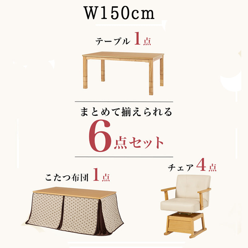 こたつ:(約)幅150×奥行90×高さ45/50/55/60/65/70cm