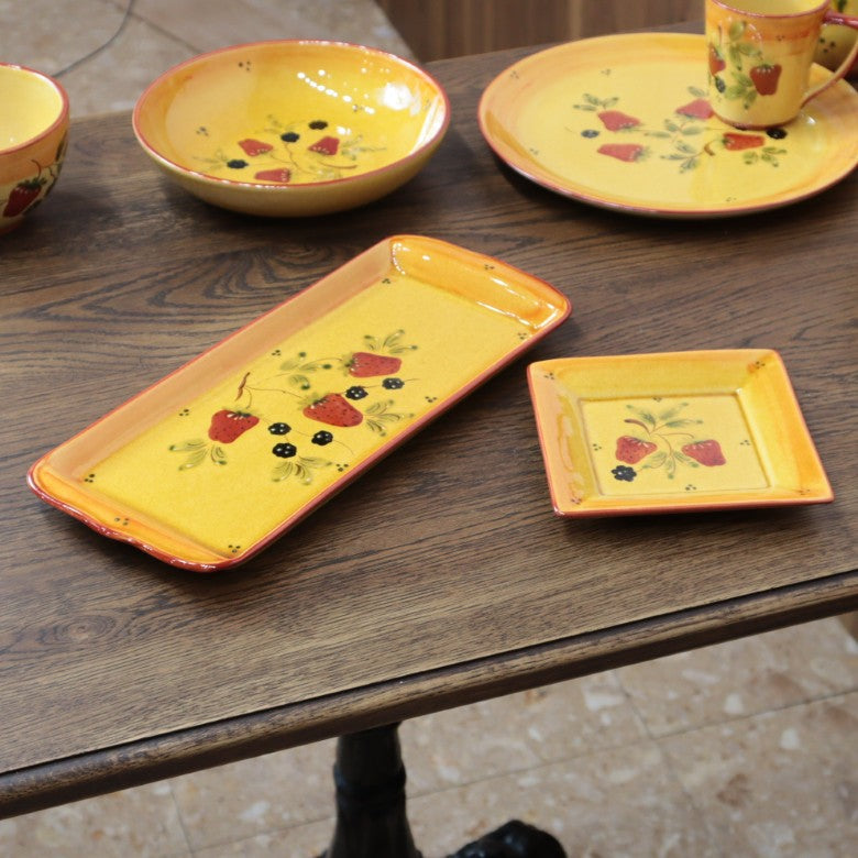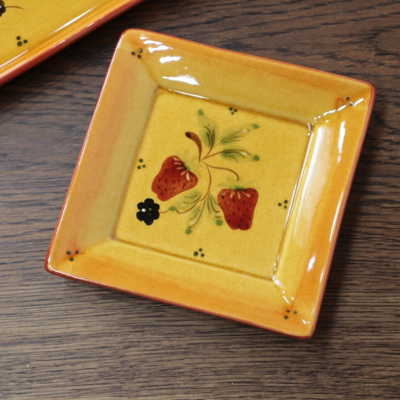 ポルトガル製 角型プレートS 15cmストロベリー 陶器 ベリー柄