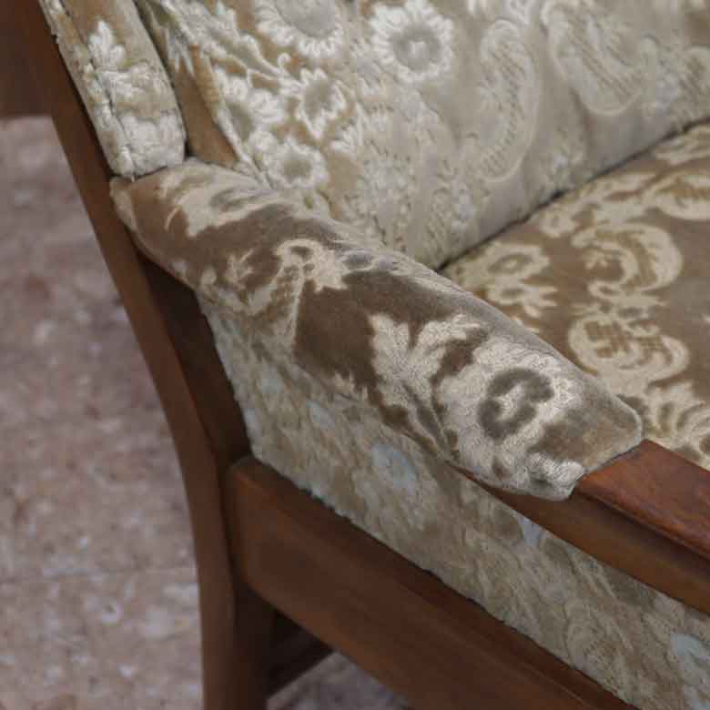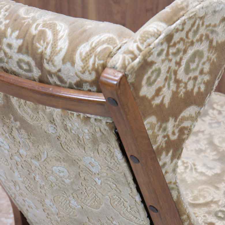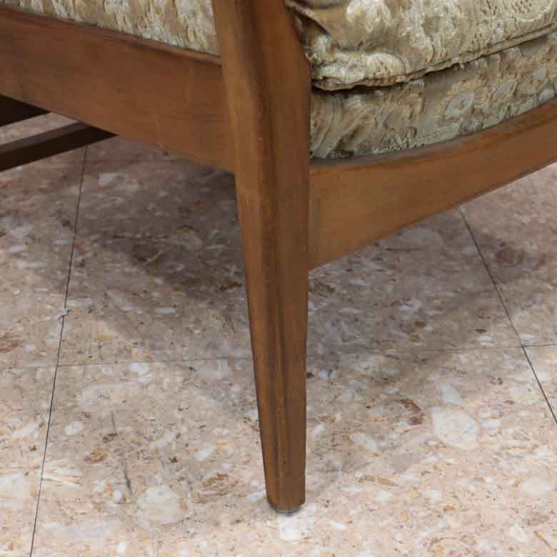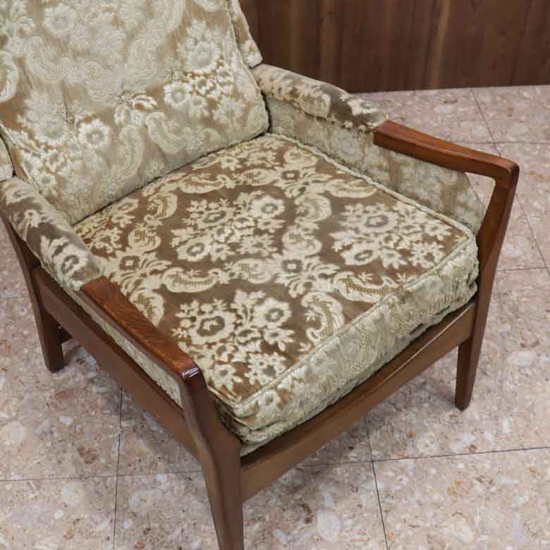 フレームは木製で、落ち着いたミッドセンチュリーの雰囲気を持ちつつも、アーム部分の形状などにはモダンなラインが見られます。これは、Cintiqueが活躍した時代の特徴をよく表しています。