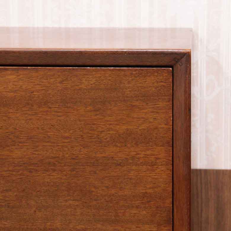 北欧スタイルを取り入れた直線的で無駄のないミニマルなデザインと、温かみのあるチーク材の美しい木目が特徴。実用性と洗練された「渋さ」を兼ね備えた、ヴィンテージ家具の中でも人気の高いアイテムです。