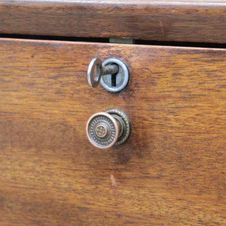 鍵付きの扉を開くと、手前に倒れてライティングデスクの天板になります。