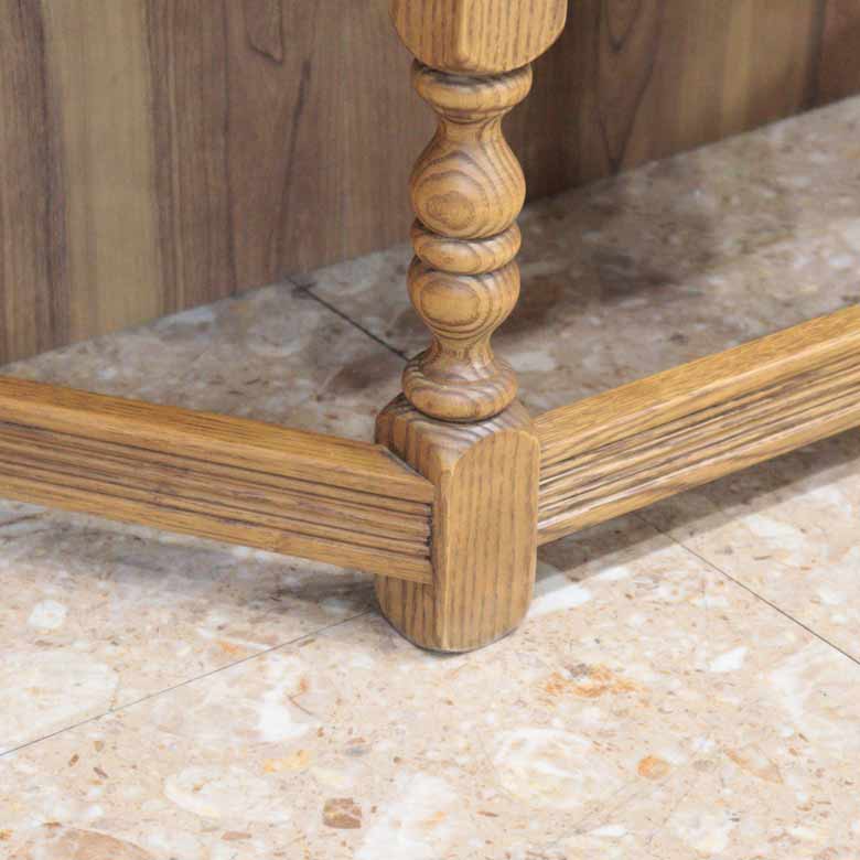 コンパクトながら収納力も備えており、リビングやベッドサイド、玄関など多彩なシーンで活躍。ツイストデザインの脚部は安定感と装飾性を兼ね、英国伝統家具らしい重厚感と優雅さを感じさせます。アンティークやクラシックインテリアと相性が良く、長く愛用することでさらに深い味わいを楽しめるキャビネットです。