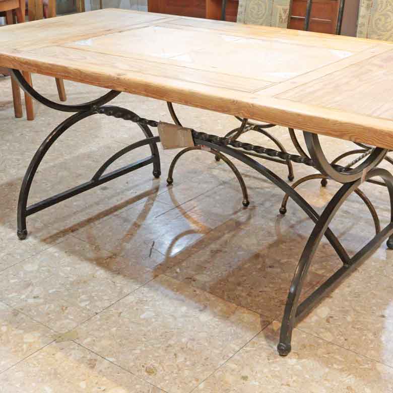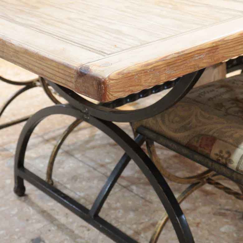 イギリスのヴィンテージショップにて買い付けた、唯一無二の存在感を放つダイニングテーブル&チェアのセットです。 温かみのあるパイン材、クラシックなテラコッタ調タイル、そして重厚なアイアンフレームが絶妙に融合した、カントリースタイルやヨーロピアンアンティークがお好きな方にぴったりの逸品です。