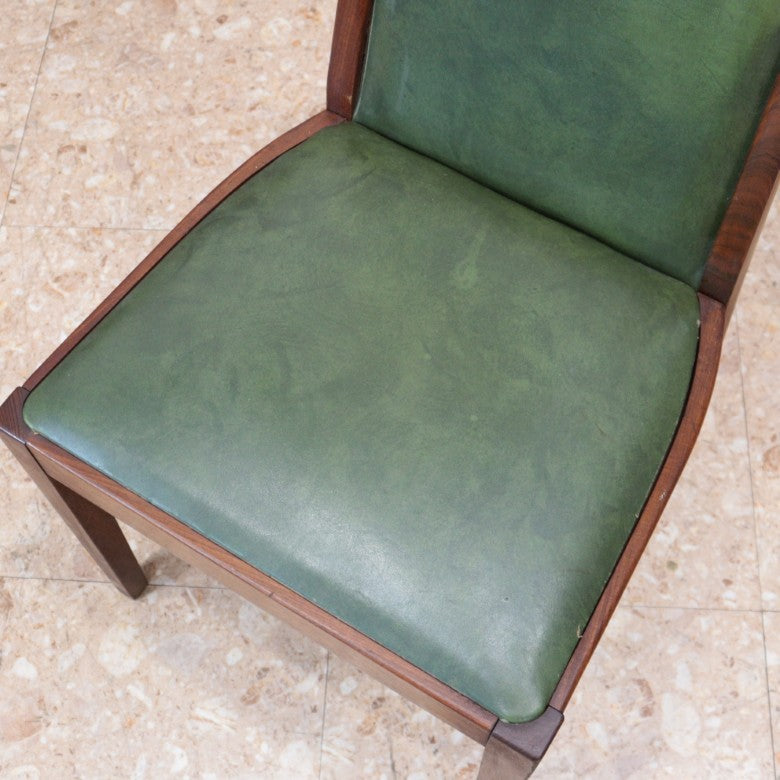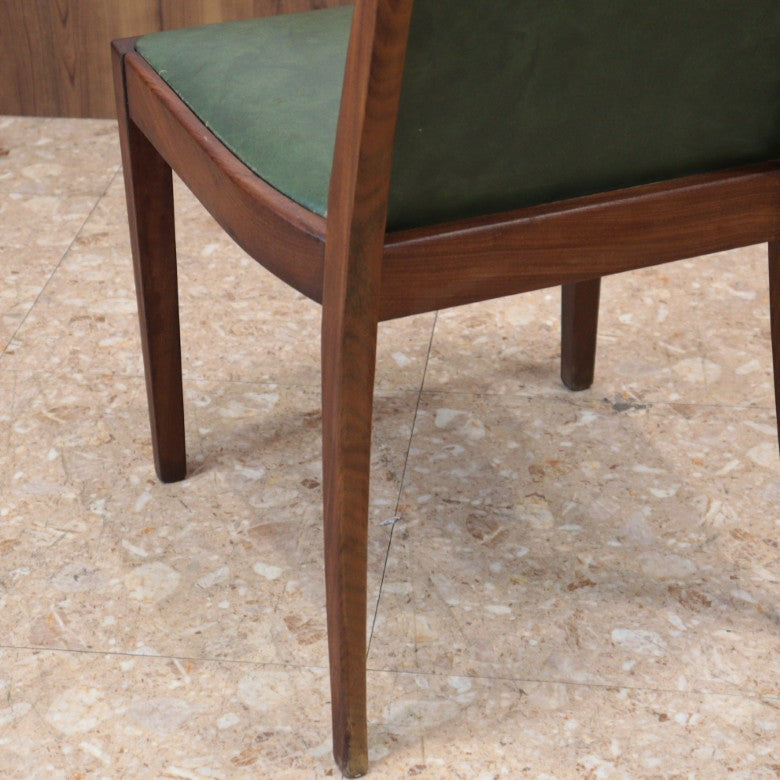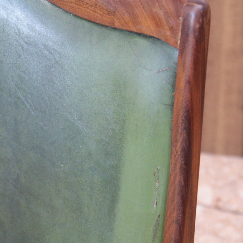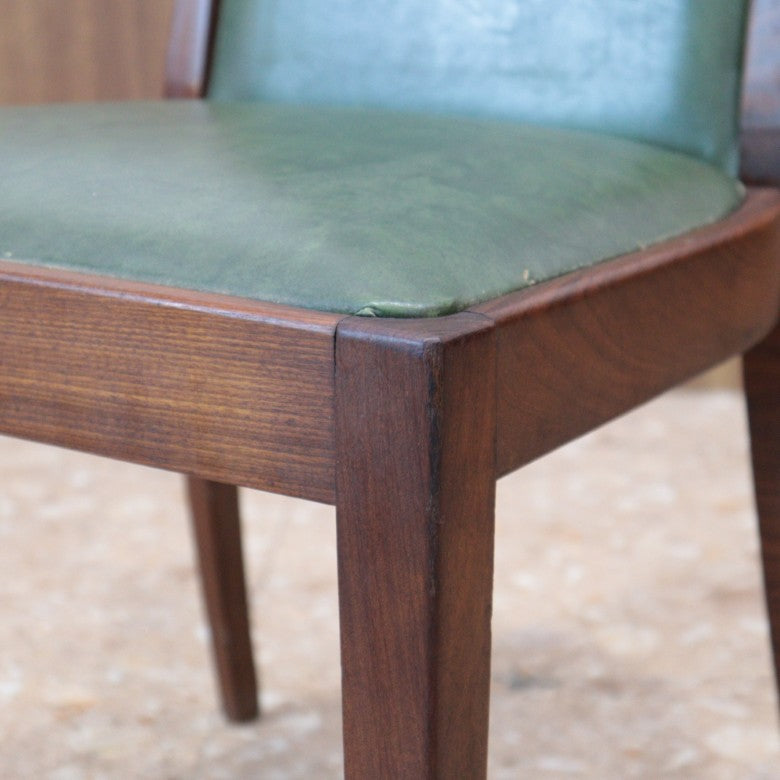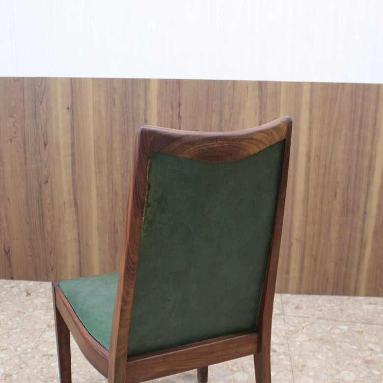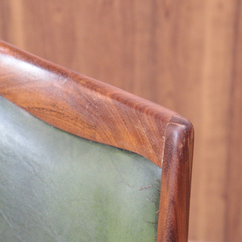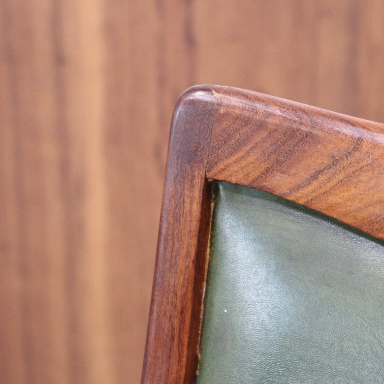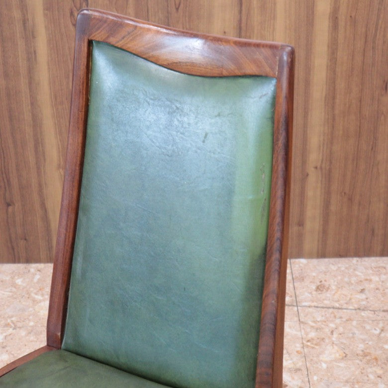 イギリスの名門ブランド G-PLAN(ジープラン) によるヴィンテージ・ダイニングチェアです。上質なチーク材のフレームに深みのあるグリーンレザー(ビニールレザー)を組み合わせた、気品漂うミッドセンチュリーデザインの一脚。