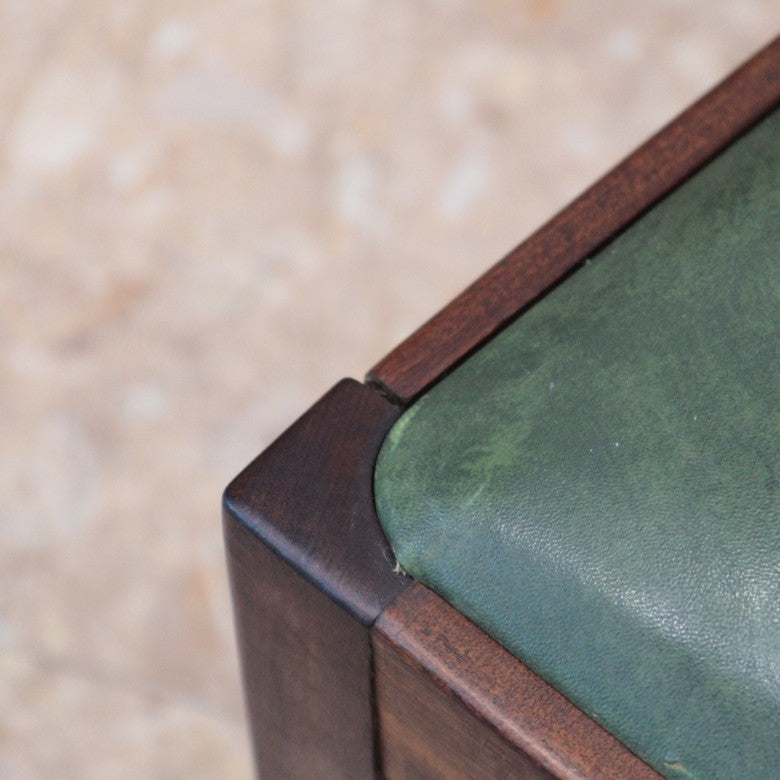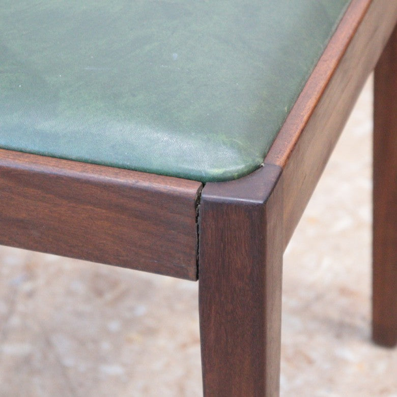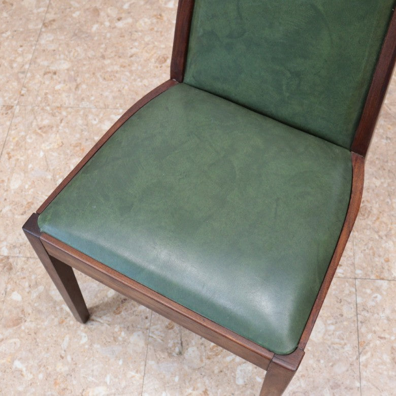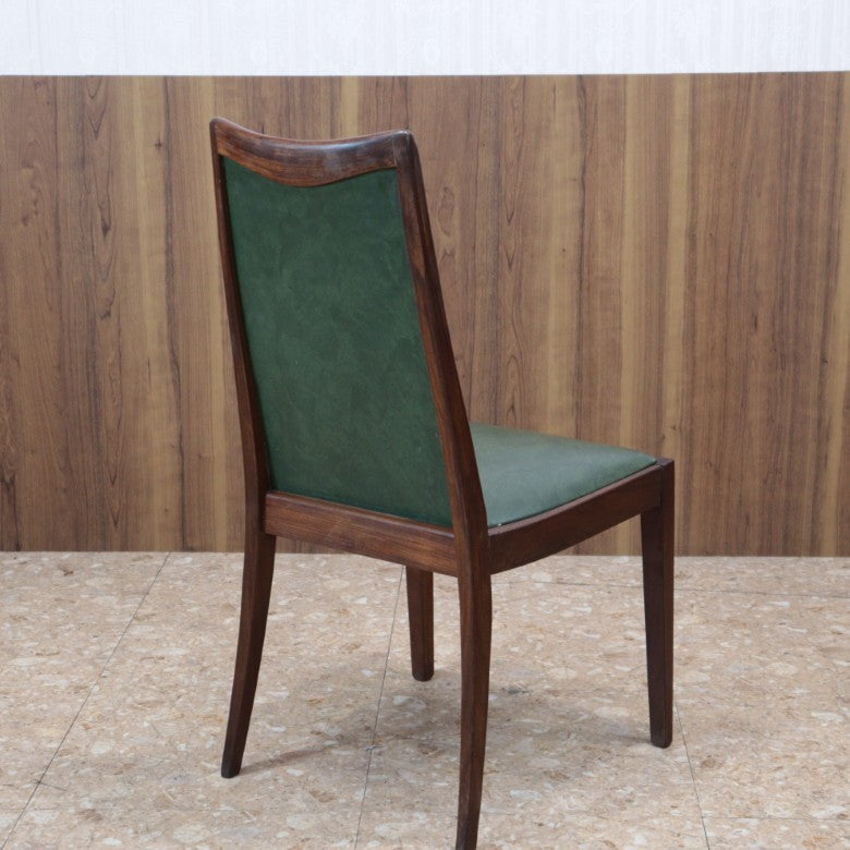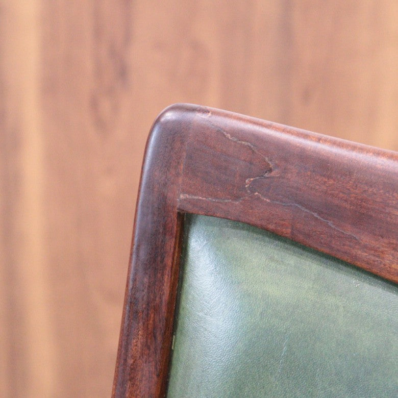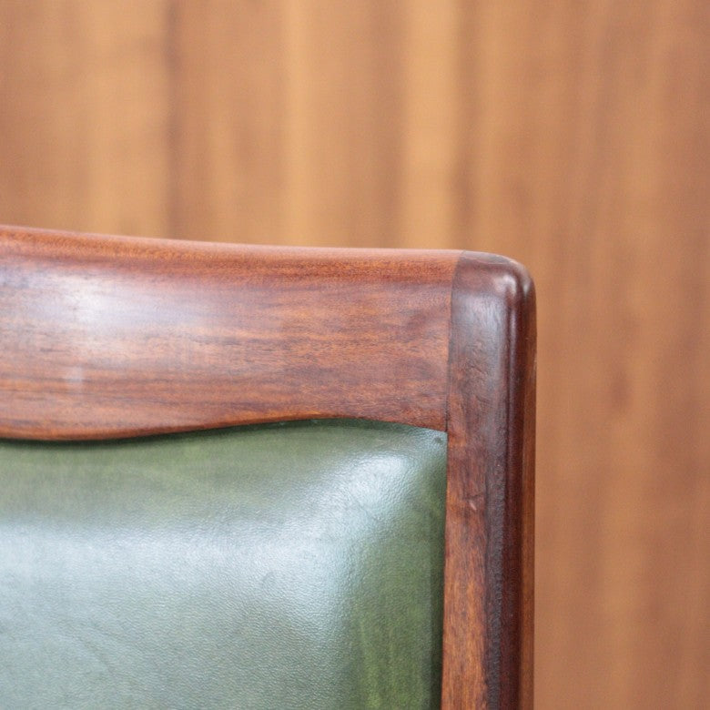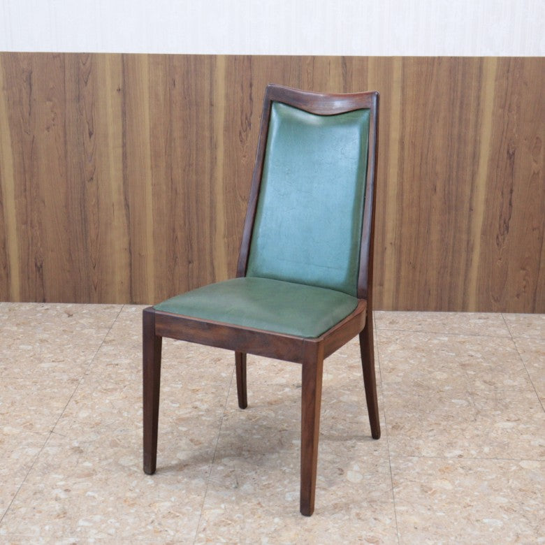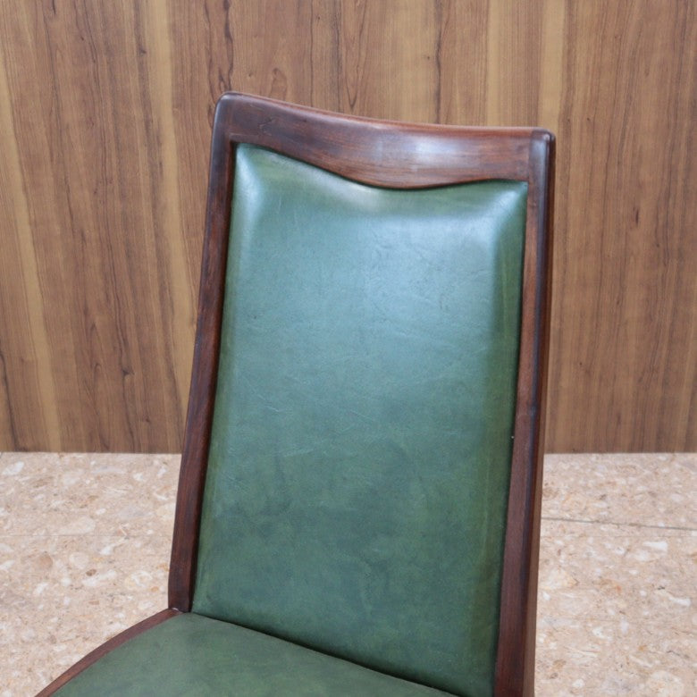 イギリスの名門ブランド G-PLAN(ジープラン) によるヴィンテージ・ダイニングチェアです。上質なチーク材のフレームに深みのあるグリーンレザー(ビニールレザー)を組み合わせた、気品漂うミッドセンチュリーデザインの一脚。