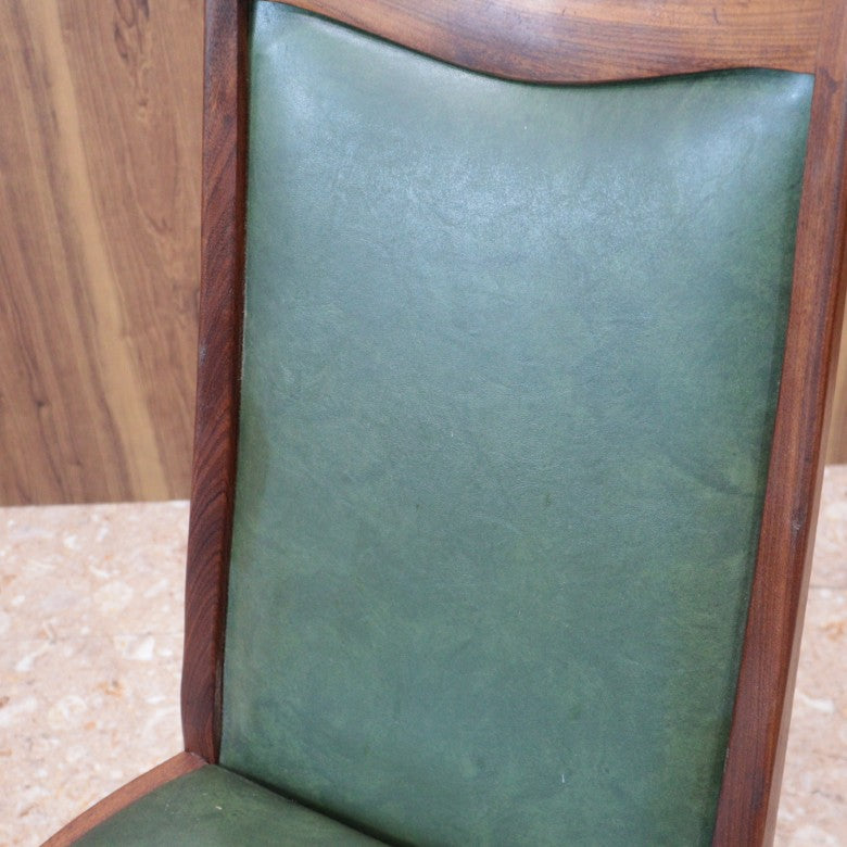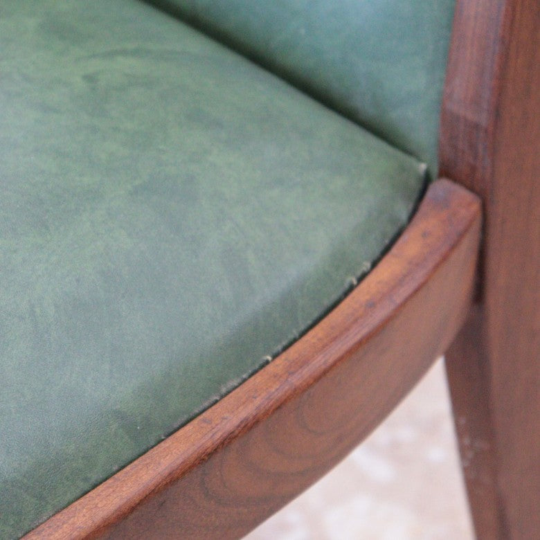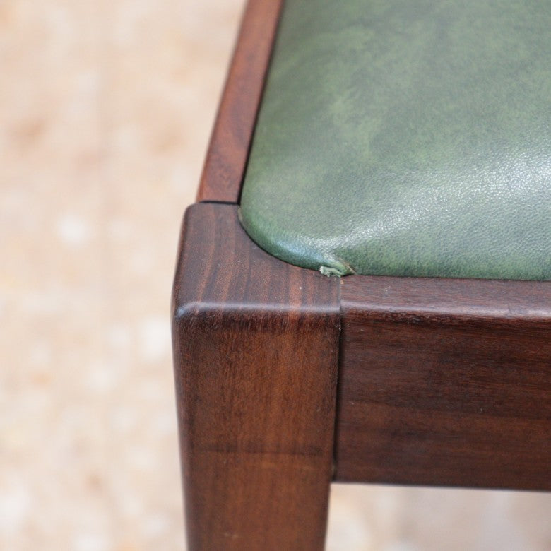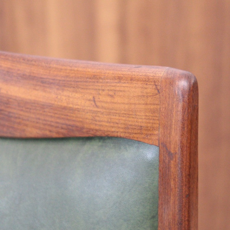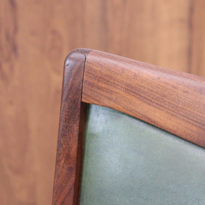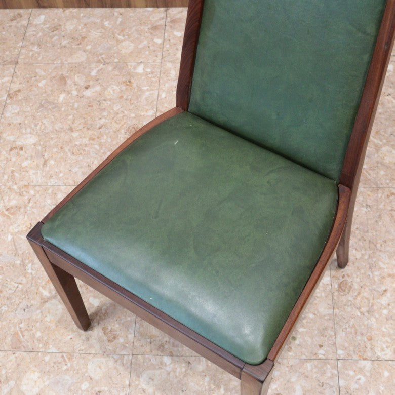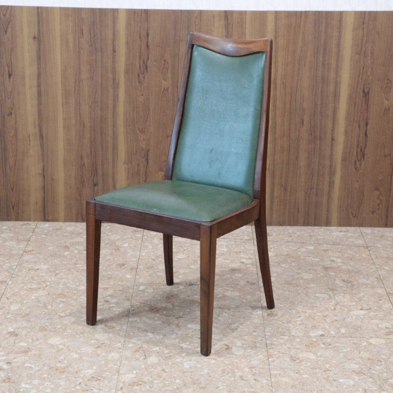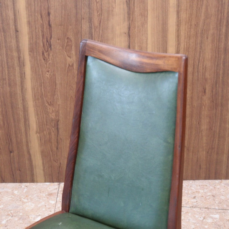 イギリスの名門ブランド G-PLAN(ジープラン) によるヴィンテージ・ダイニングチェアです。上質なチーク材のフレームに深みのあるグリーンレザー(ビニールレザー)を組み合わせた、気品漂うミッドセンチュリーデザインの一脚。