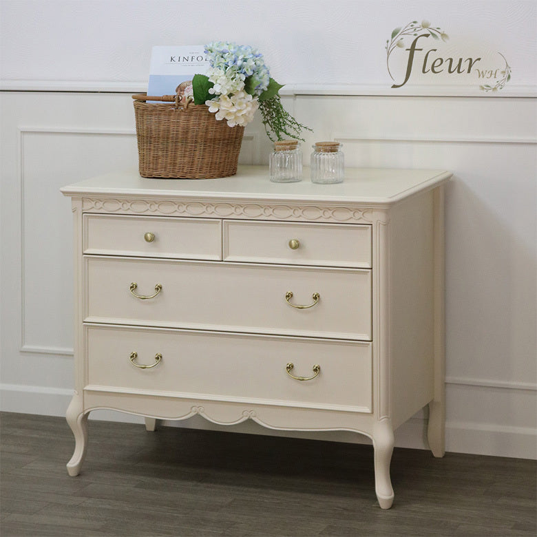 ローチェスト 85cm幅 東海家具 アンティークホワイト フルール 白家具 姫 プリンセス おしゃれ かわいい 783253