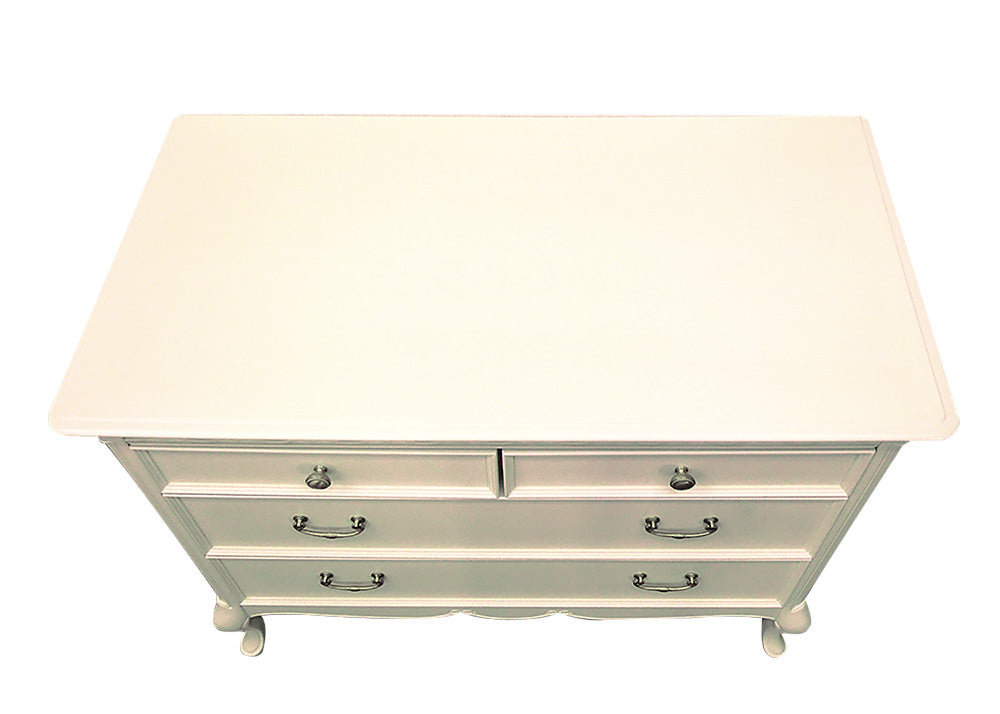 フレンチカントリースタイルの家具のデザインは丸みを帯びた優美なラインのものが主流で、フレンチエレガンスの代名詞ともいえる「カブリオールレッグ」(猫脚)となめらかな女性的な美しいラインが特徴です。