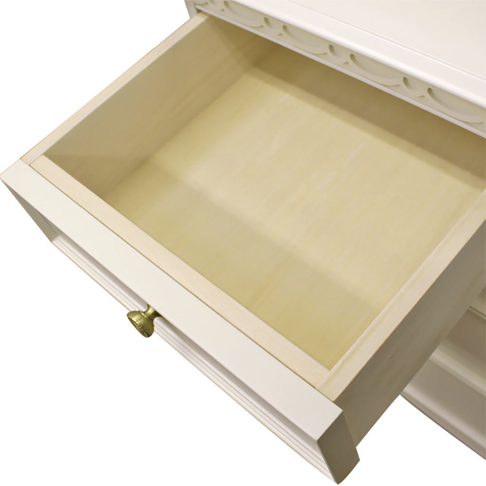 フルールWHシリーズは表面になめらかな木肌のリンデン材、脚部にマホガニー材を使い、木肌が薄っすら残るミルキーホワイトカラーで上品な仕上がりになっております。