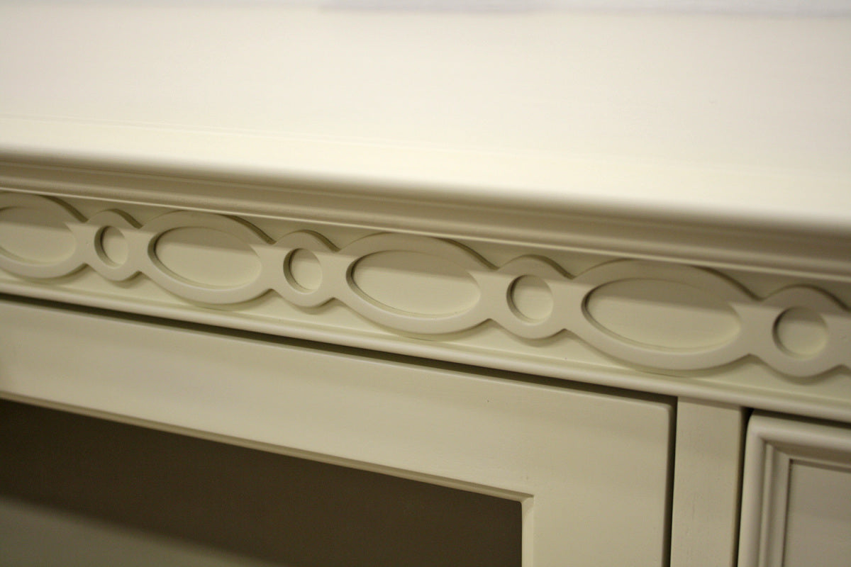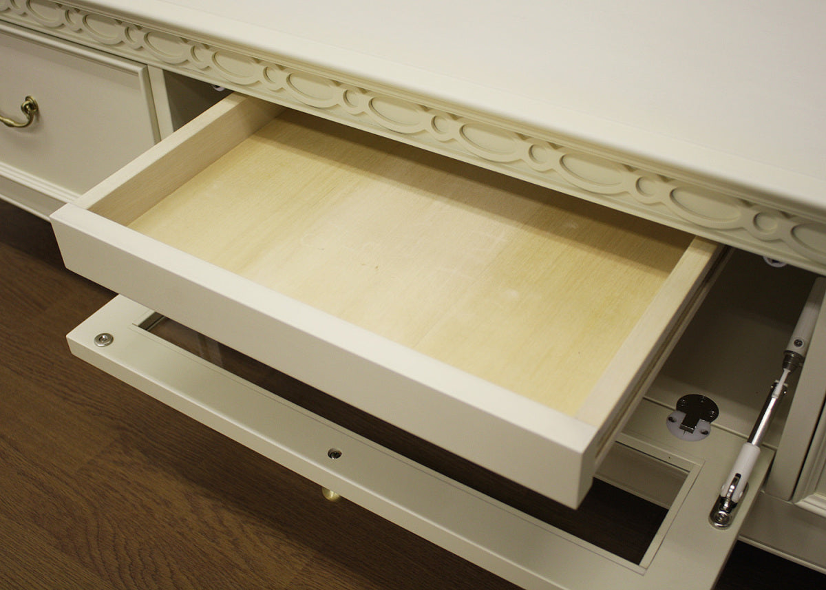 フレンチカントリースタイルの家具のデザインは丸みを帯びた優美なラインのものが主流で、フレンチエレガンスの代名詞ともいえる「カブリオールレッグ」(猫脚)となめらかな女性的な美しいラインが特徴です。