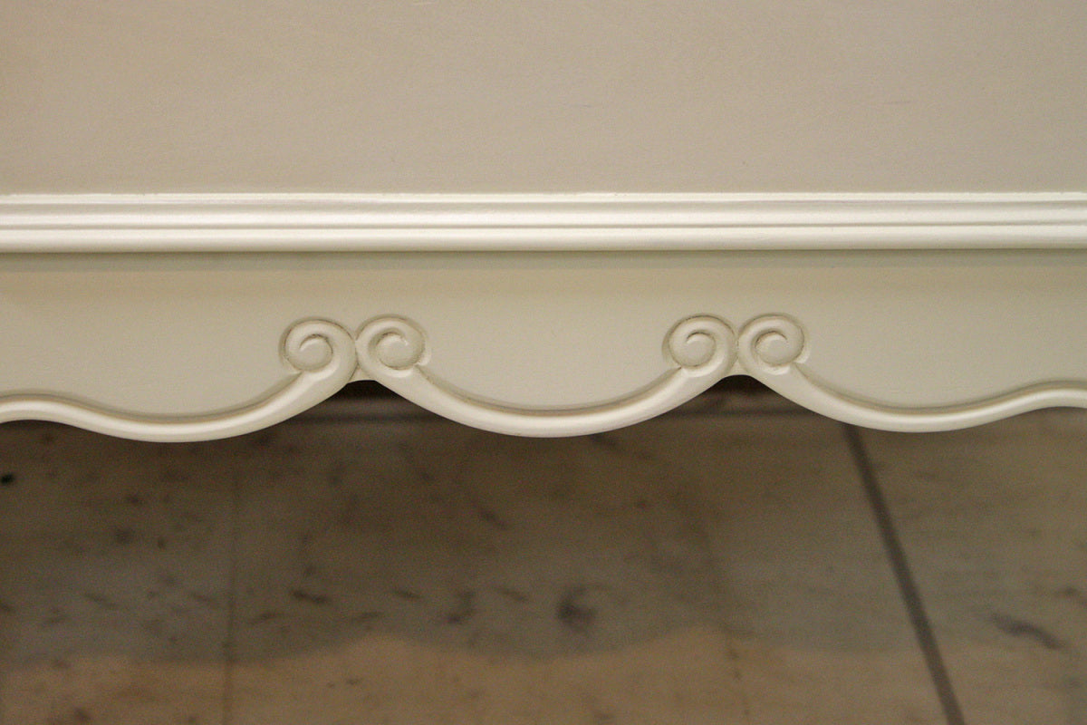 フレンチカントリースタイルの家具のデザインは丸みを帯びた優美なラインのものが主流で、フレンチエレガンスの代名詞ともいえる「カブリオールレッグ」(猫脚)となめらかな女性的な美しいラインが特徴です。