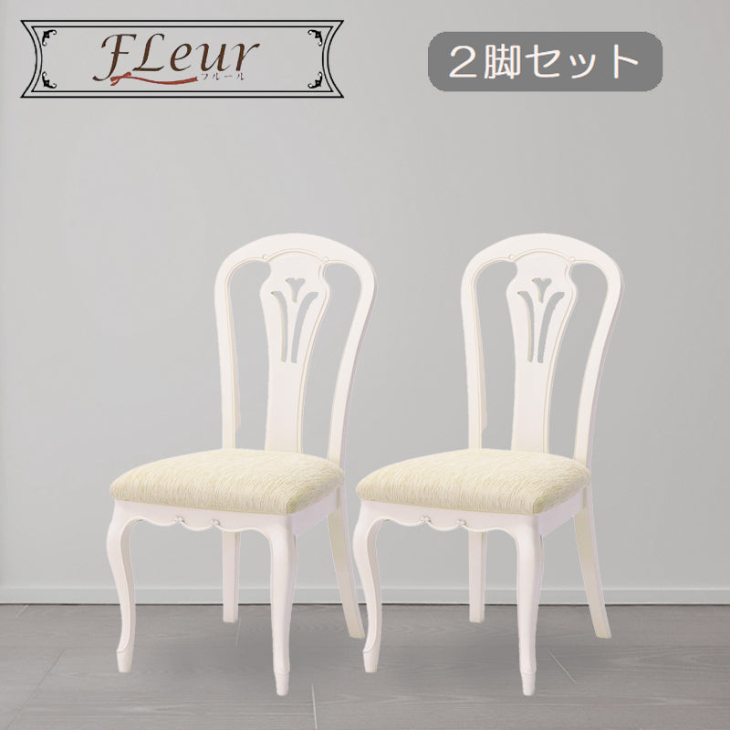 ダイニングチェア 2脚セット アンティーク ホワイト 白家具 姫 プリンセス おしゃれ かわいい フルール 454597