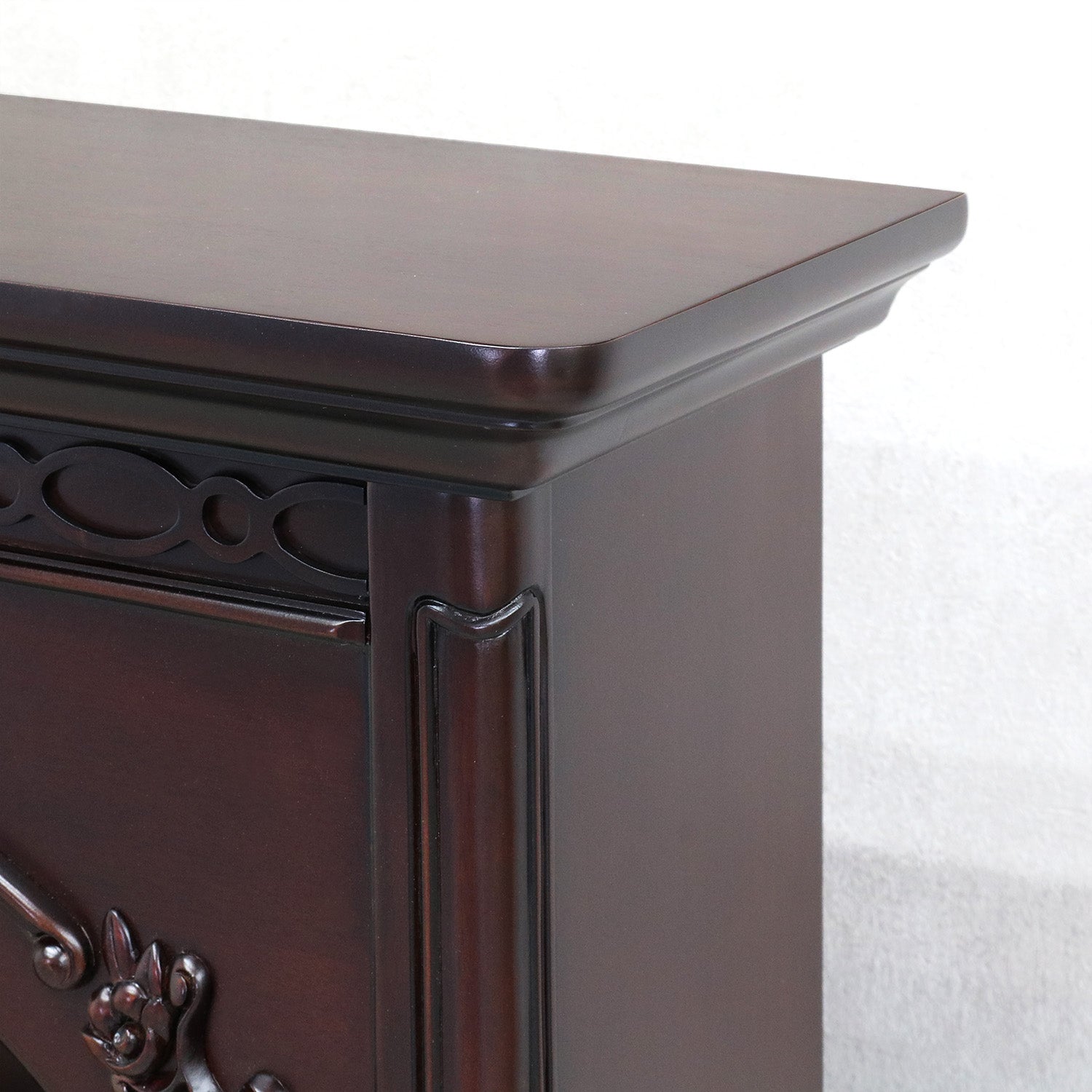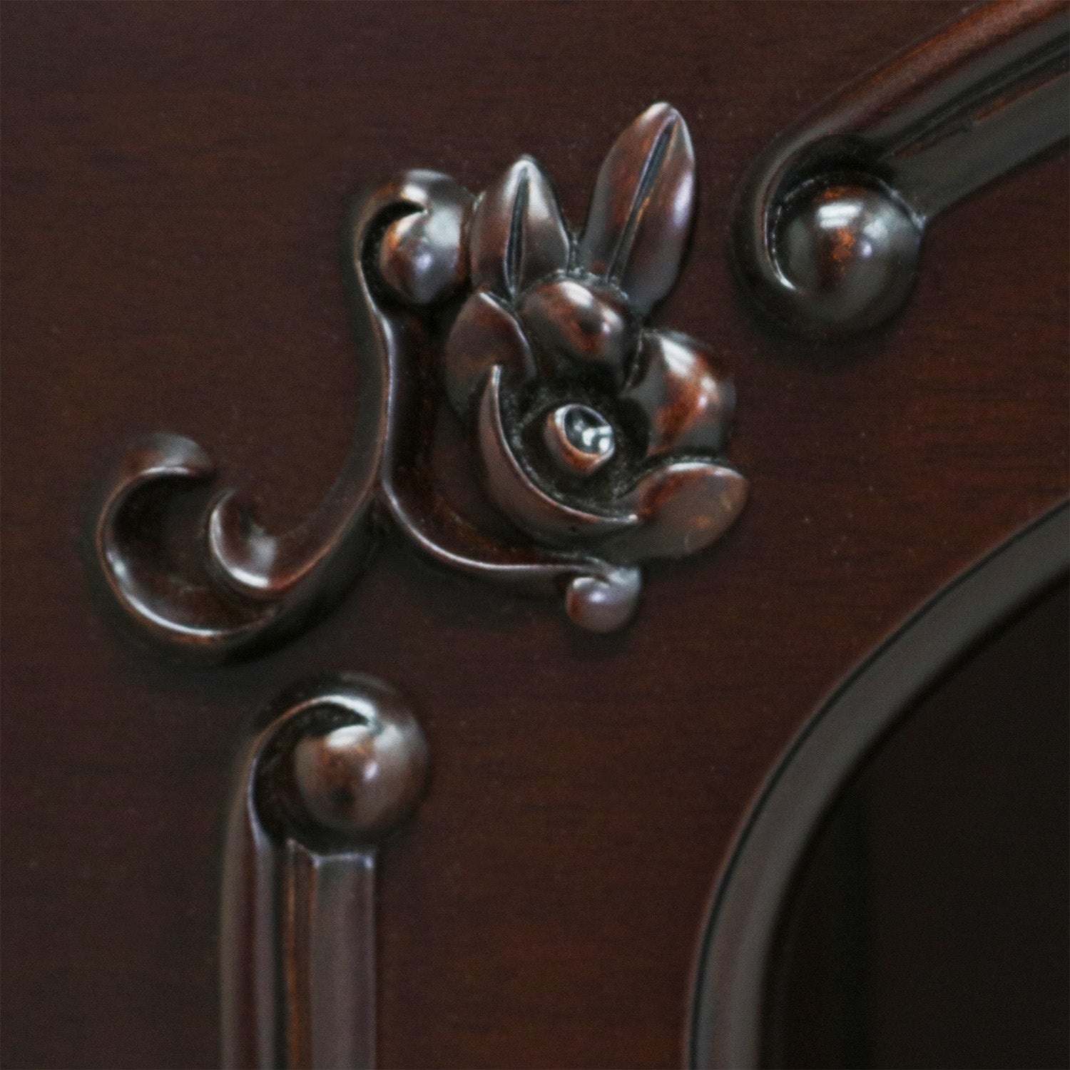 ロココ調家具のエッセンスを残したフレンチカントリースタイルを、よりカジュアルに実用的なアイテムでセレクトしたトータルコーディネートシリーズです。マホガニー材を贅沢に使い、表面は厳選された木目を使った化粧張りを施し、フレンチエレガンスの代名詞といえる「カブリオールレッグ」(猫脚)と、なめらかな女性的な美しいラインとマホガニー無垢材を削り出した彫刻が特徴です。ゆるやかにカーブした柔らかなラインとカブリオールレッグ(猫脚)と彫刻が上品な雰囲気と可愛らしさを際立たせています。