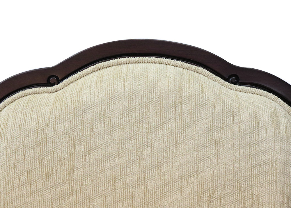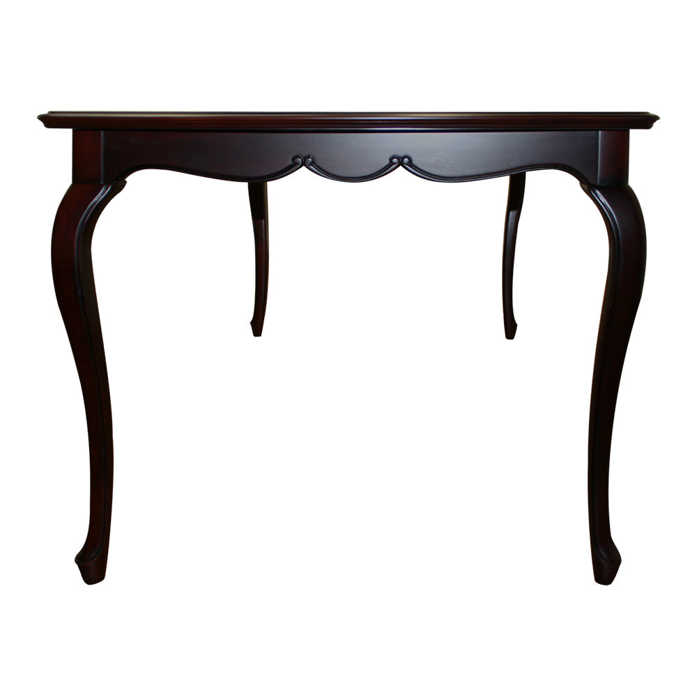ロココ調家具のエッセンスを残したフレンチカントリースタイルを、よりカジュアルに実用的なアイテムでセレクトしたトータルコーディネートシリーズです。マホガニー材を贅沢に使い、表面は厳選された木目を使った化粧張りを施し、フレンチエレガンスの代名詞といえる「カブリオールレッグ」(猫脚)と、なめらかな女性的な美しいラインとマホガニー無垢材を削り出した彫刻が特徴です。ゆるやかにカーブした柔らかなラインとカブリオールレッグ(猫脚)と彫刻が上品な雰囲気と可愛らしさを際立たせています。