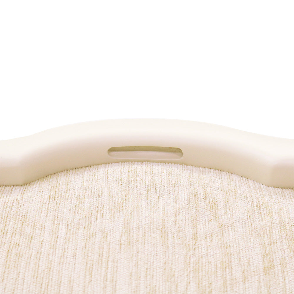 フルールWHシリーズは表面になめらかな木肌のリンデン材、脚部にマホガニー材を使い、木肌が薄っすら残るミルキーホワイトカラーで上品な仕上がりになっております。