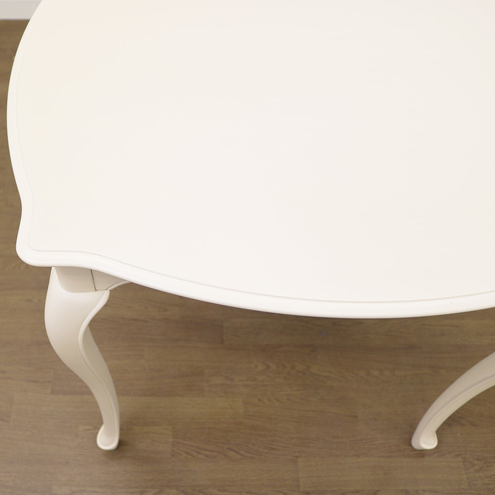 フレンチカントリースタイルの家具のデザインは丸みを帯びた優美なラインのものが主流で、フレンチエレガンスの代名詞ともいえる「カブリオールレッグ」(猫脚)となめらかな女性的な美しいラインが特徴です。