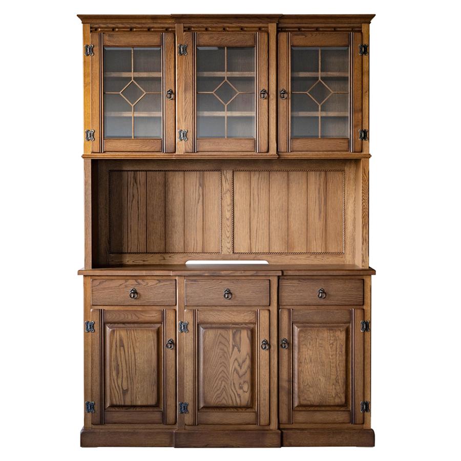 北海道民芸家具 国産家具 キッチンボード 3ドアキャビネット 引き出し付き 135cm 厳選素材 Canterbury カンタベリー オープンボード135