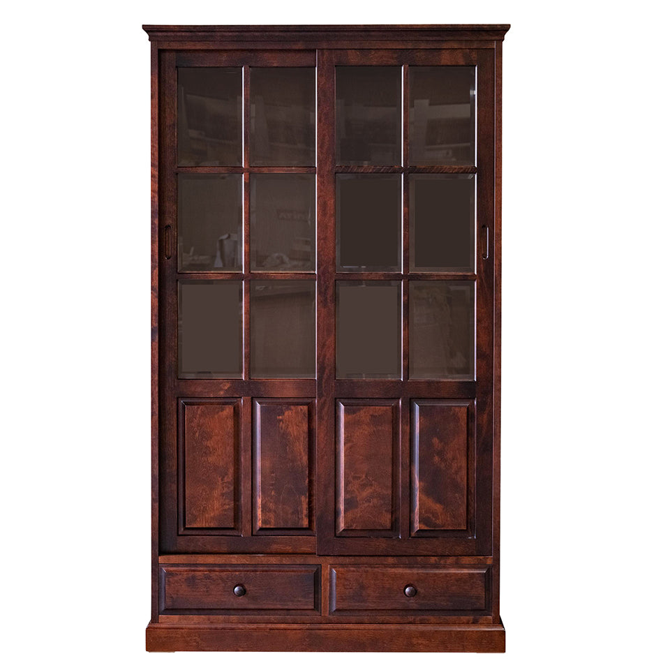 北海道民芸家具 国産家具 W105cm 抽戸 引戸 本棚 書棚 ブックシェルフ ブラウン 北海 アンティーク