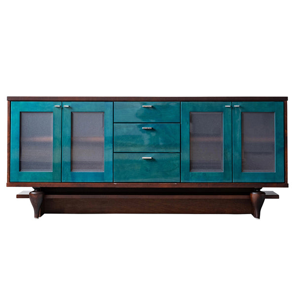 北海道民芸家具 国産家具 160 cm サイドボード キャビネット ブルー ブラウン Yoppen