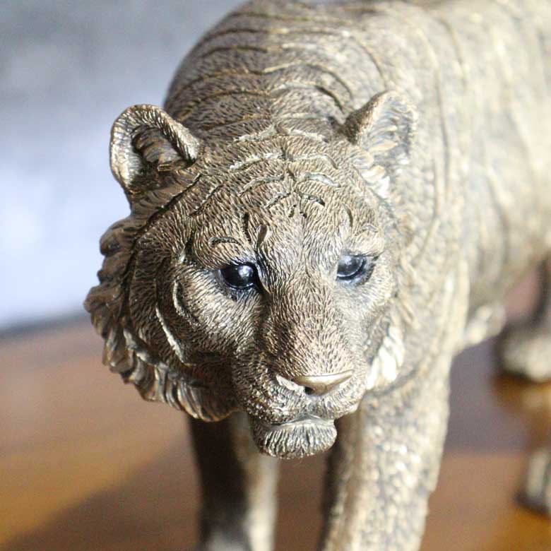重役室、グローバルな雰囲気のリビングルーム、モダンなホームライブラリーなどにフィットするこの虎は、様々なスタイルを引き立てるエレガントさと誇り高き気品を兼ね備えています。