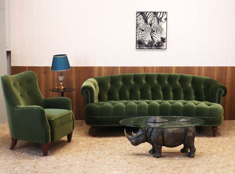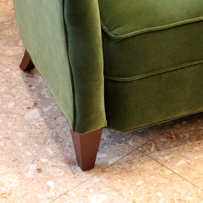 ラ・ローザは高級感のあるボタン留めが美しく、また、シートと背もたれ、アーム、脚部等に沿ったネイルヘッドがアクセントになっています。
