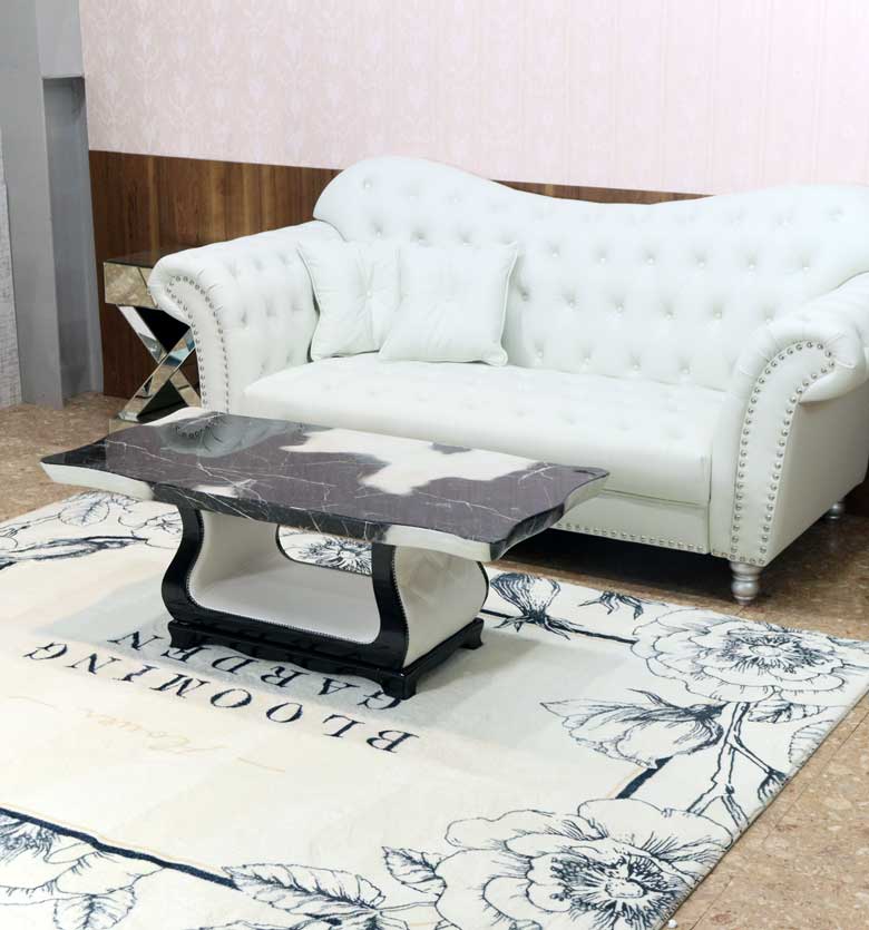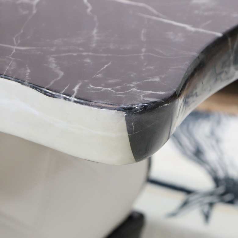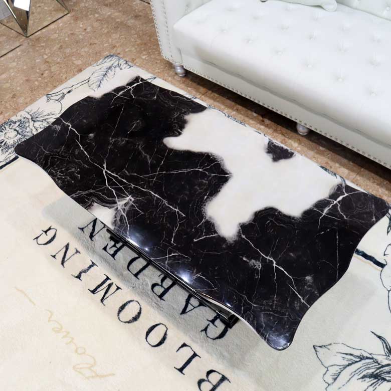 天板は黒色の石目模様です。スッキリとしながら落ち着いた高級感のあるローテーブルとなります