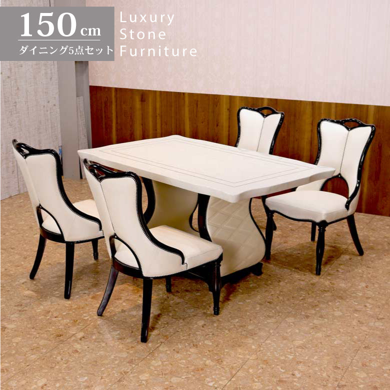 大理石 ダイニングテーブルセット 5点セット 150cm 長方形 4人用 エレガント ダイニングセット 食卓 テーブル 石 ソフィア