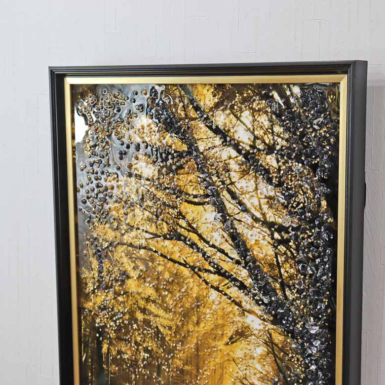 インパクトがあるアートの表面にアクリル樹脂でコーティングを施し、立体感のある仕上がりになっております。