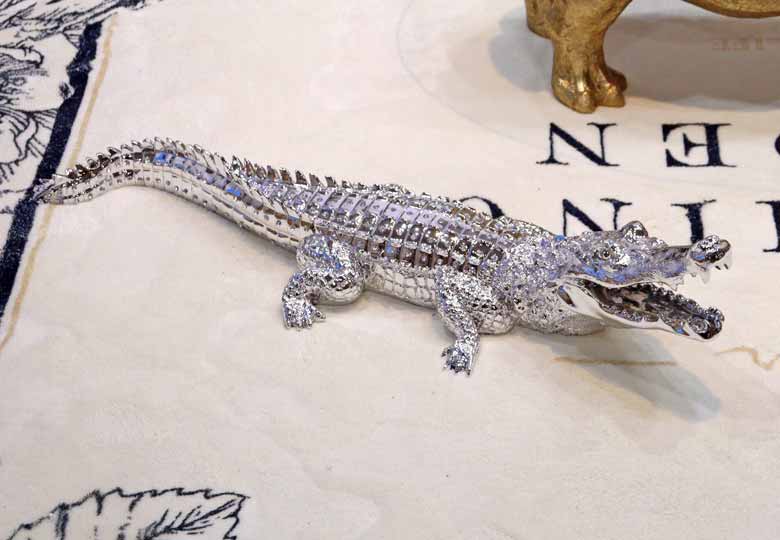 クロコダイル シルバー ラグジュアリーオブジェ アリゲーター ワニ