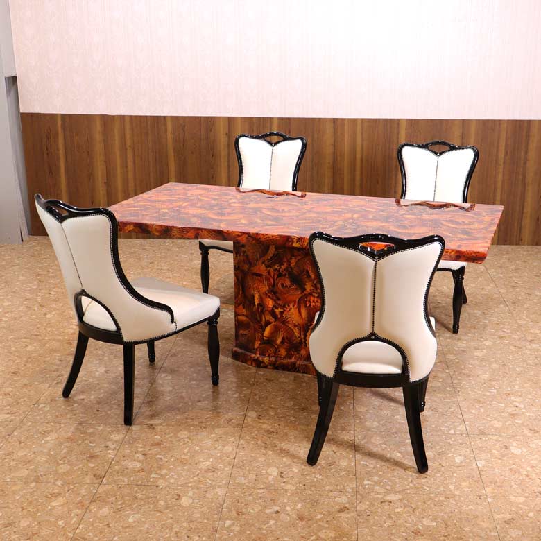 大理石 ダイニングテーブルセット 5点セット 180cm マーブル 4人用 エレガント ダイニングセット 食卓 テーブル 石 鯉と龍