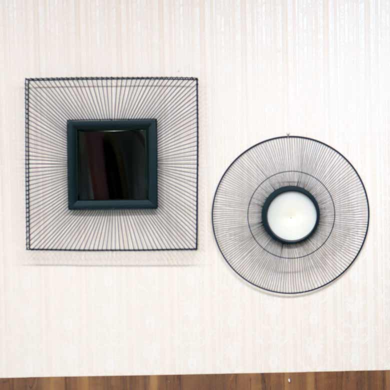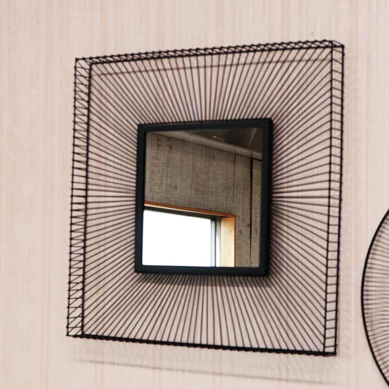 ミッドセンチュリーを思わせるデザインに立体感のあるアイアンオブジェのミラー