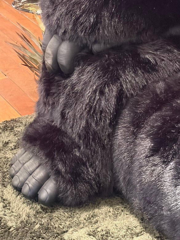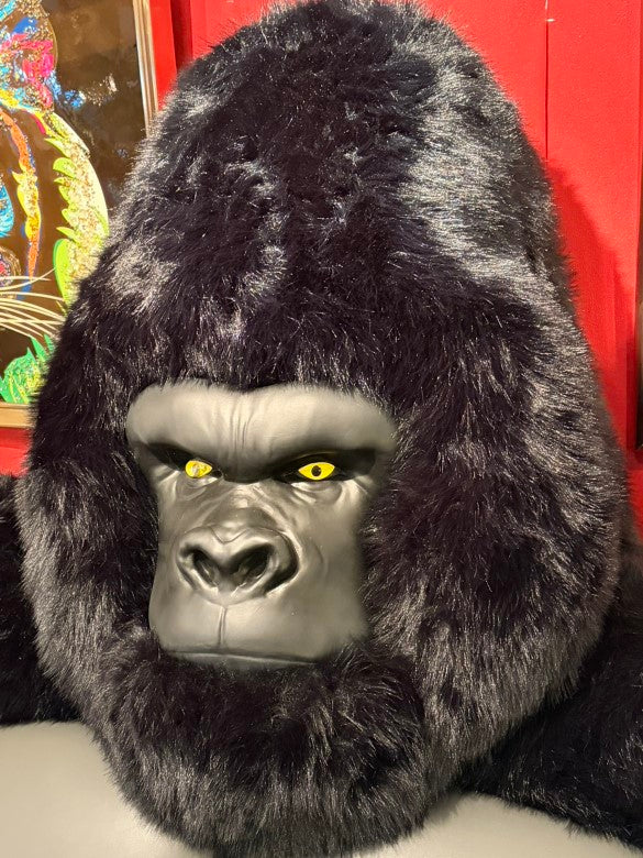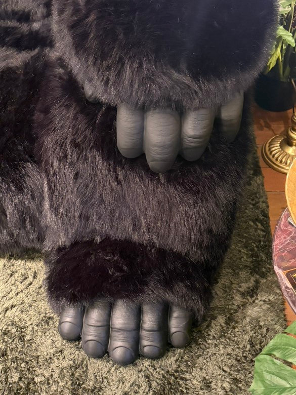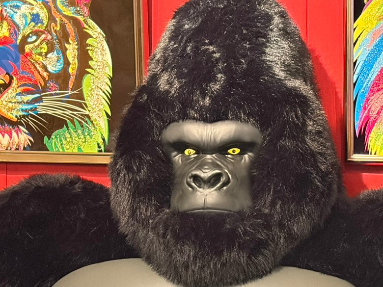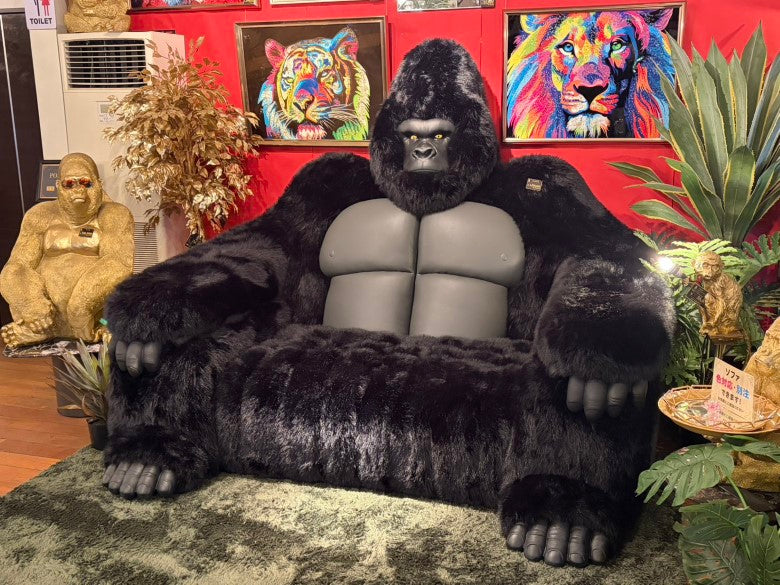 リアルな造形と迫力: 力強いゴリラの姿を忠実に再現。特に、精悍な顔つき、たくましい胸板(座面クッション)、そして手足のディテールは、見る人に強烈なインパクトを与えます。