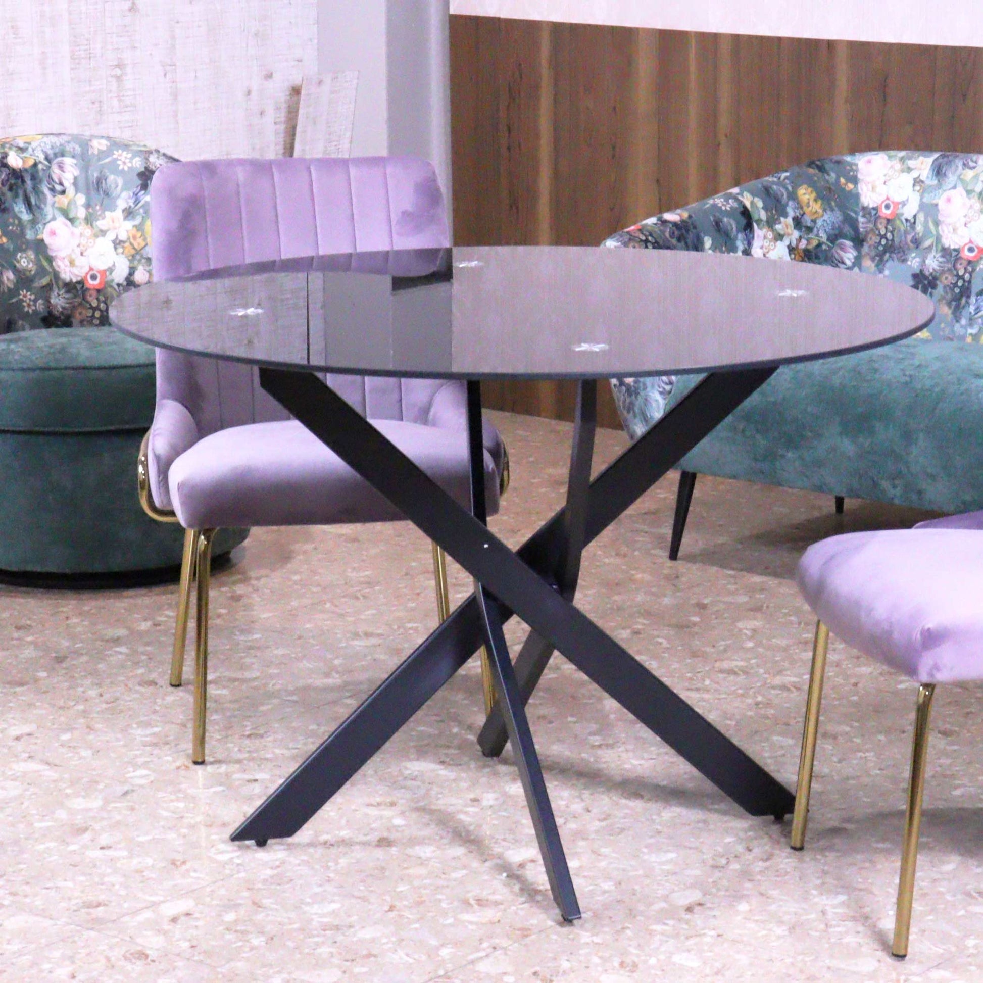 ダイニンテーブル ラウンドテーブル 110cm ブラック ガラステーブル 4人用 2人用 モダン