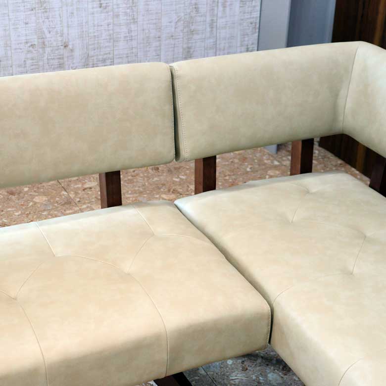 テーブルにベンチ、そしてカウチを合わせることで、ダイニングセットでもソファの座り心地を味わうことが可能です