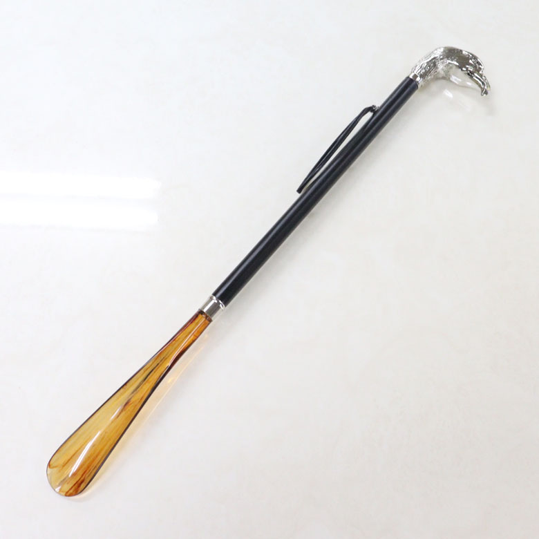 シューホーン 靴ベラ 69cm シルバー べっ甲調 鷲 イタリア製
