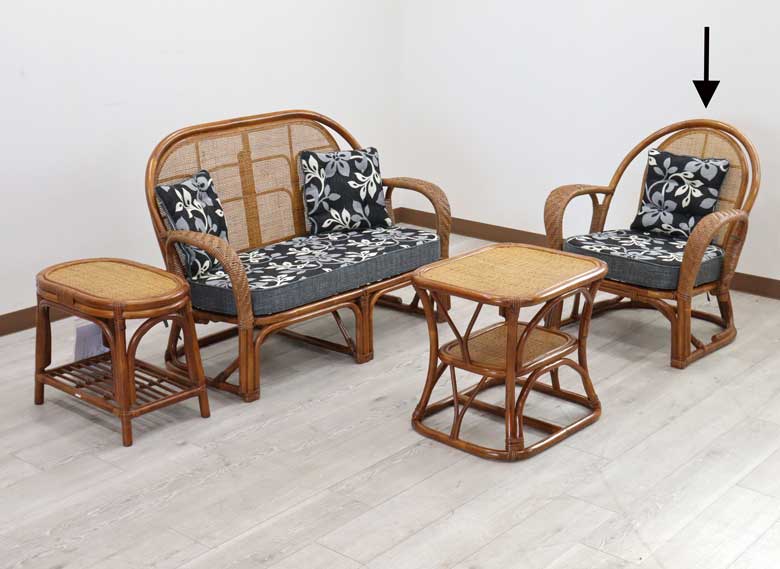 ラタン一人がけソファ クッション1個付き 軽量 ソファー リバーシブル