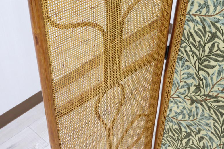 軽量ラタン 3連スクリーン グリーン 衝立 手作り 軽い カバー付き