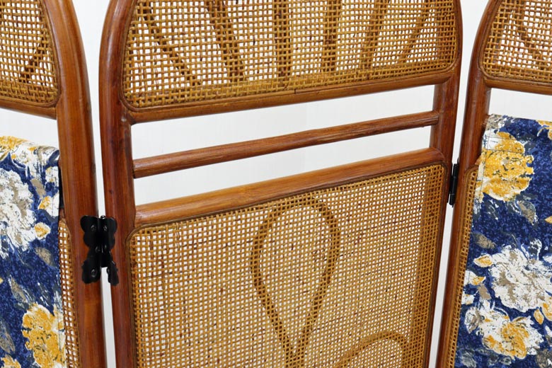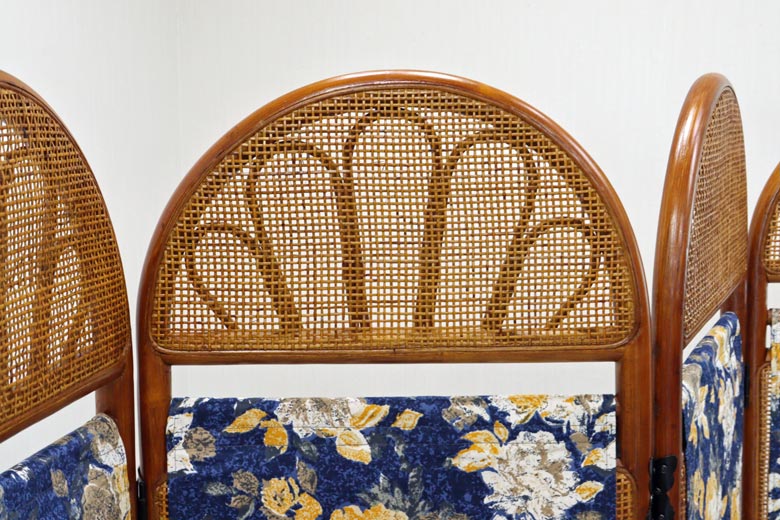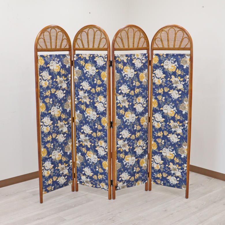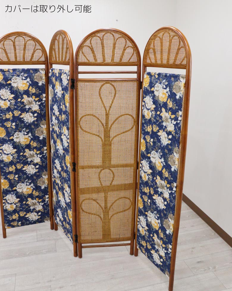軽量ラタン 4連スクリーン ブルー 衝立 手作り 軽い カバー付き