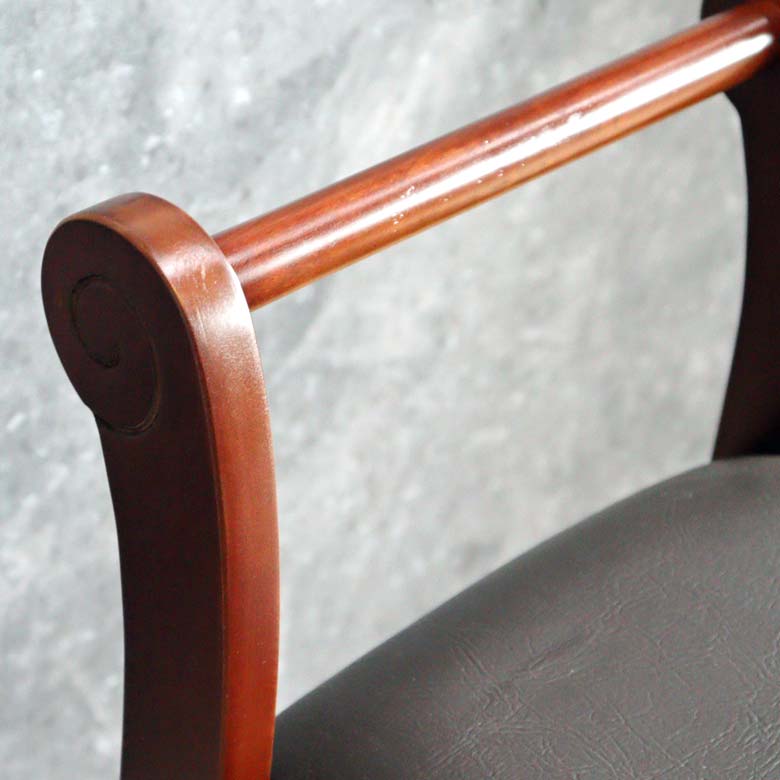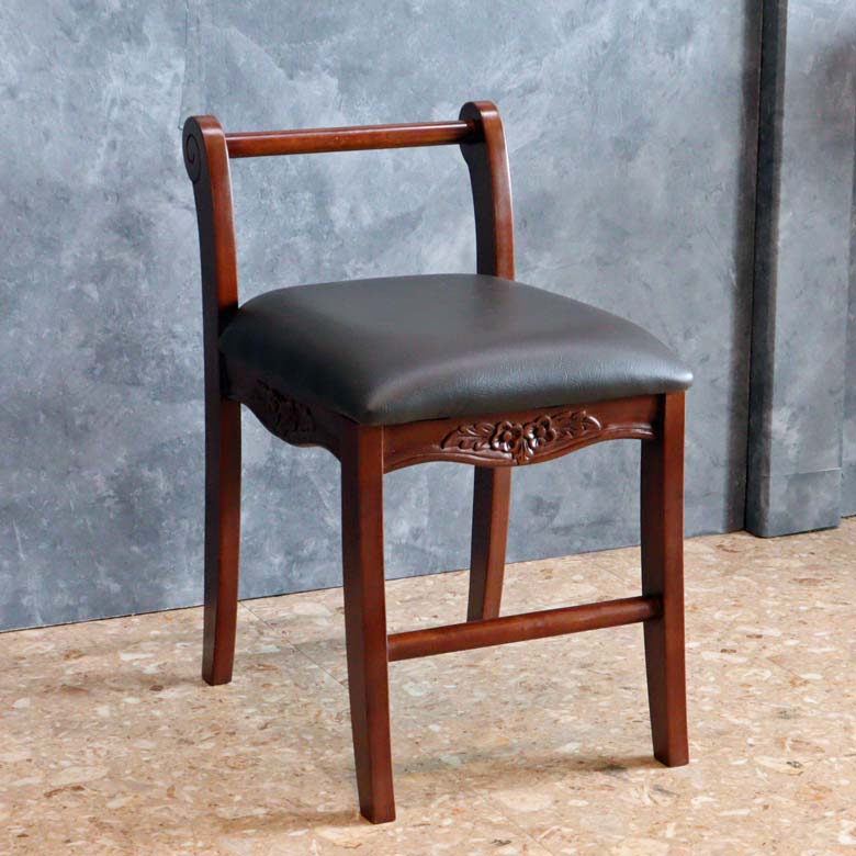 マホガニー 肘付玄関イス 片肘 スツール イス 合皮 チェア