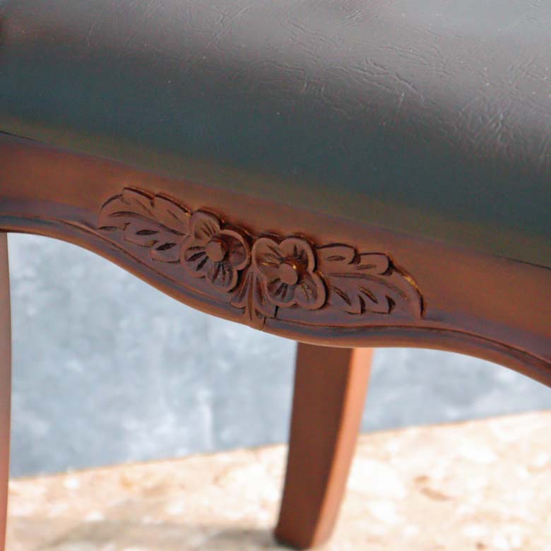 高級家具などにつかわれるマホガニーを使用し、深みのある色合いと細部に施された彫刻(カービング)が優雅な雰囲気を演出します。