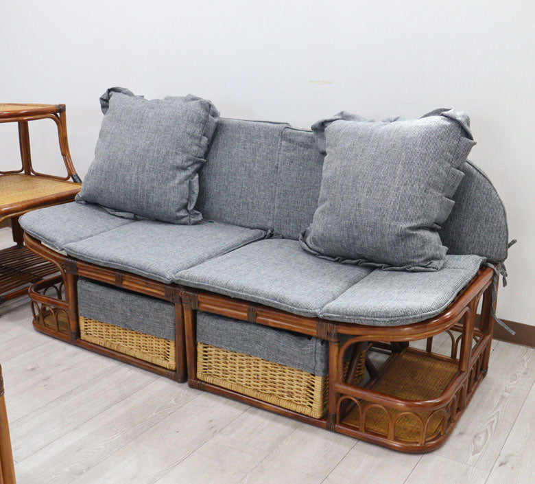 ラタンカウチソファ クッション2個付き 軽量 ソファー セパレート 140