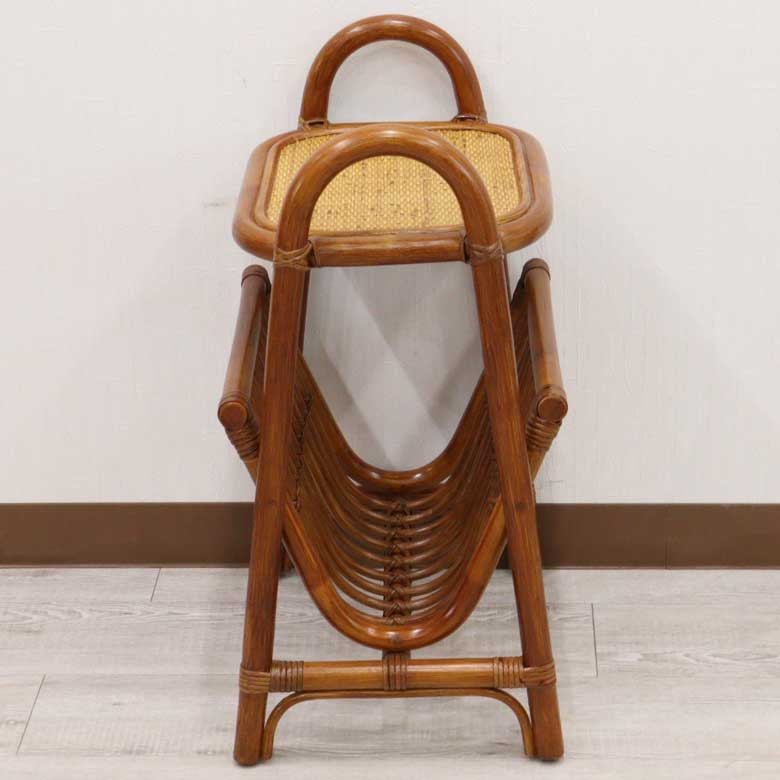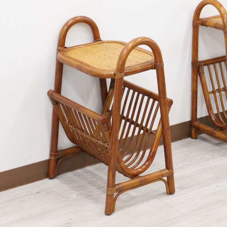 軽量ラタン テーブル付きマガジンラック 両面 手作り サイドテーブル 軽い