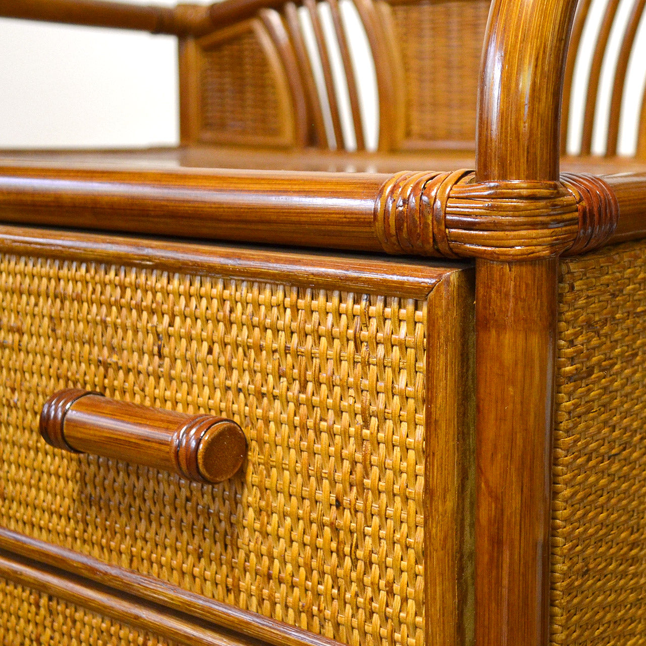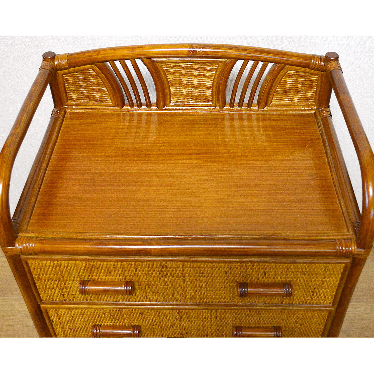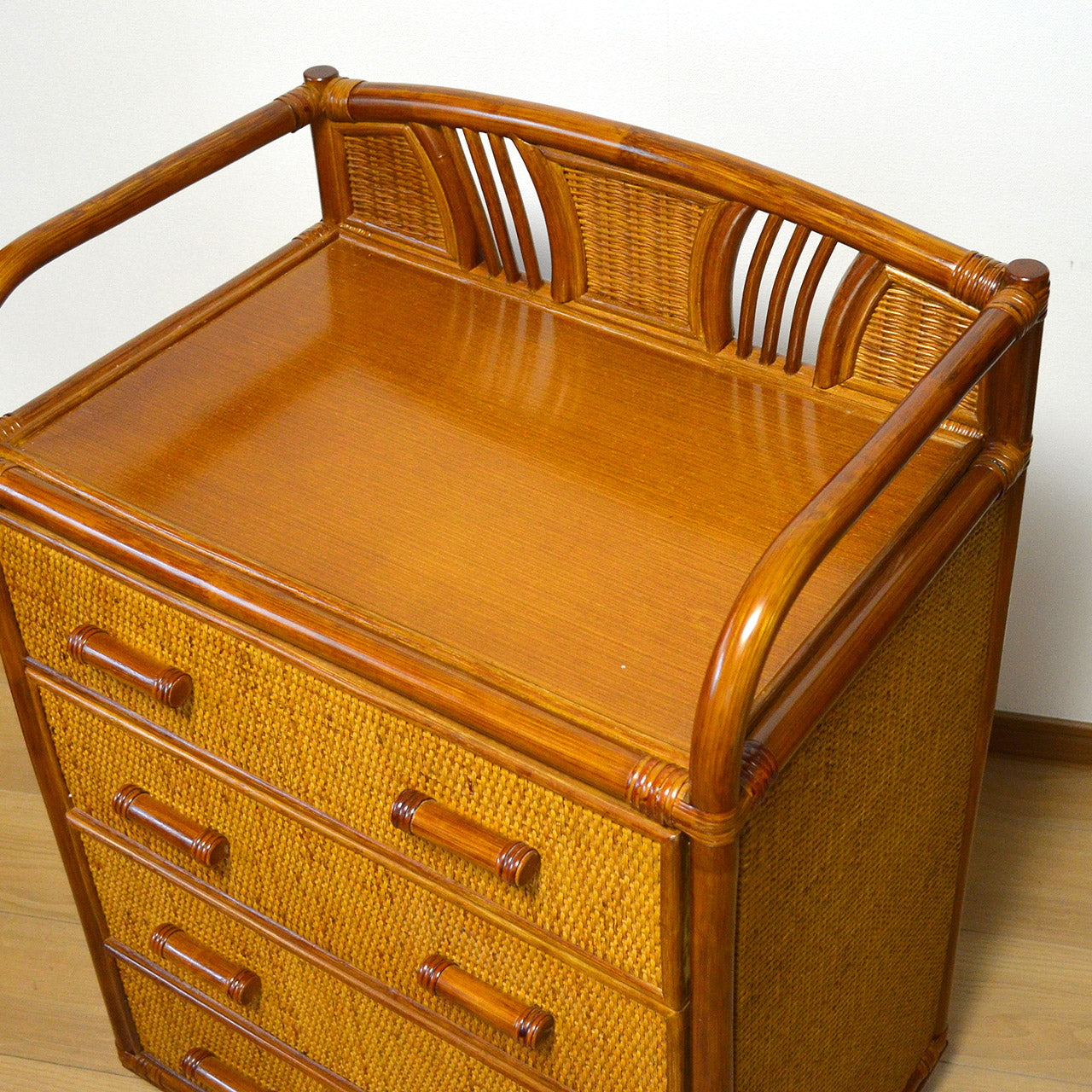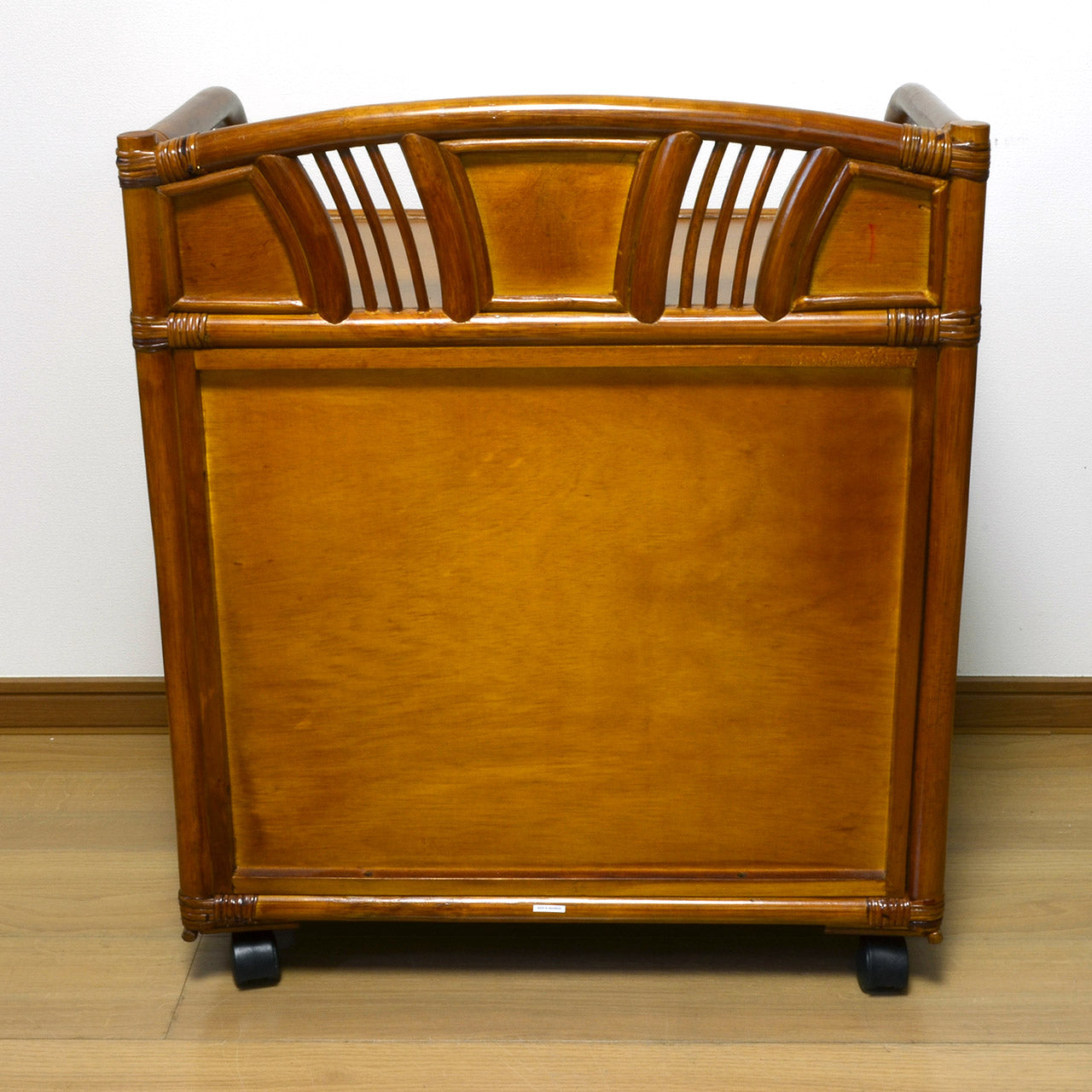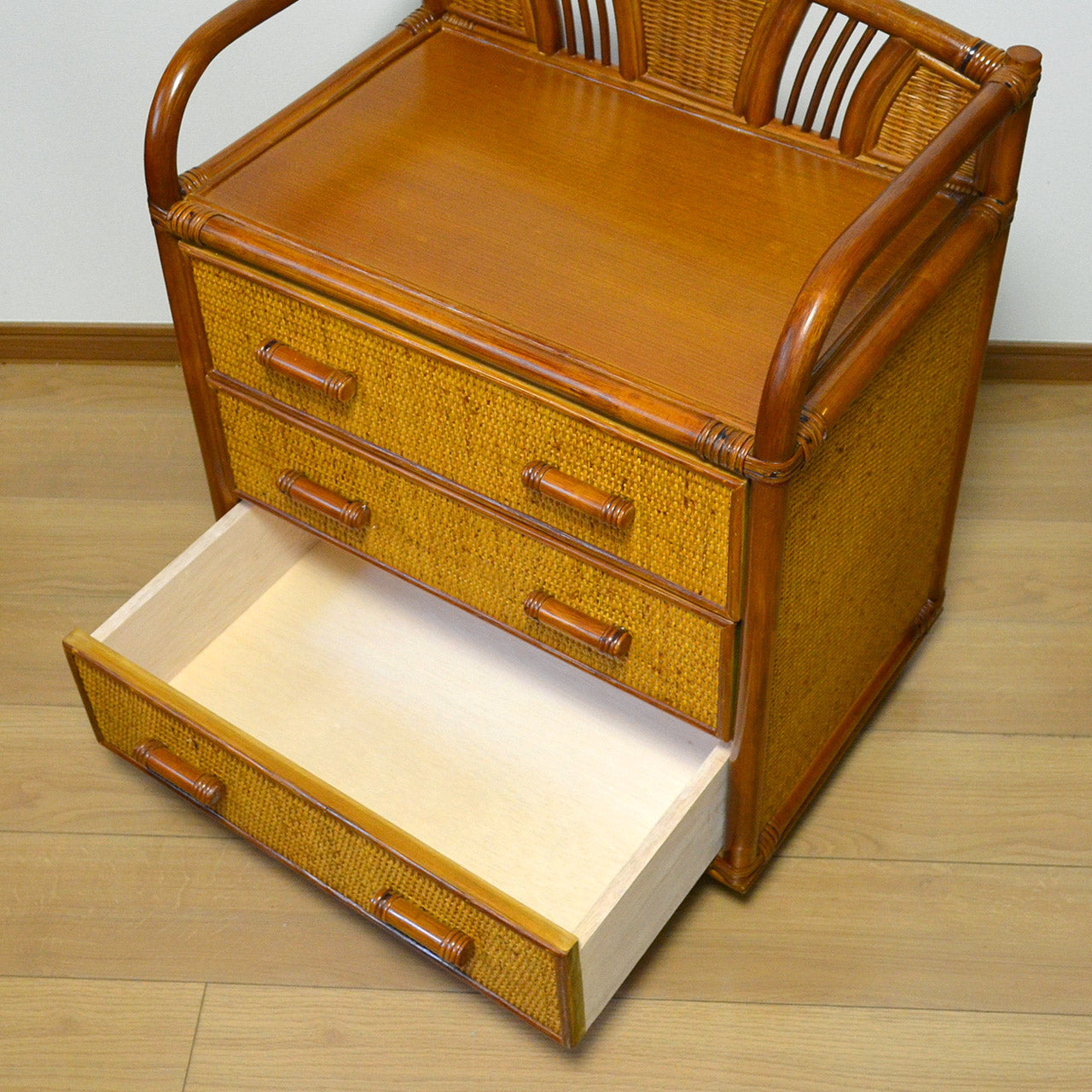 キャスター付きラタンチェスト 3段 飾り枠付き 完成品