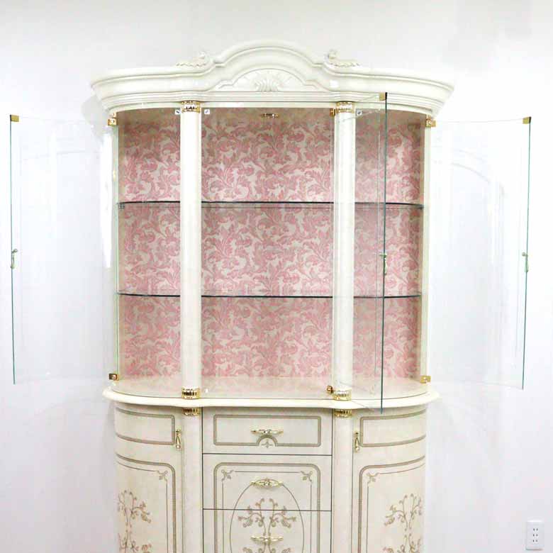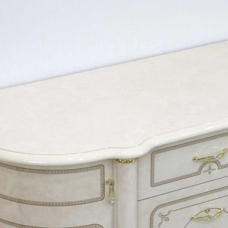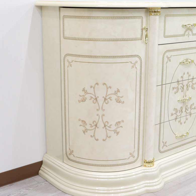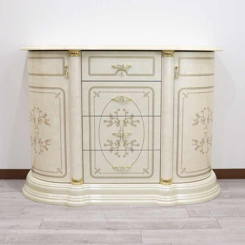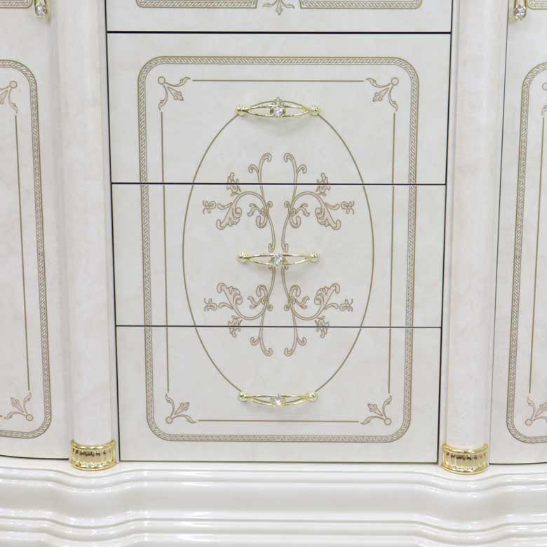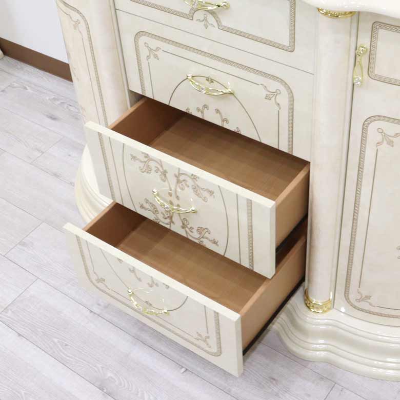 ユリの花をモチーフとしたエレガントなデザインとゴールドの縁取りが美しい大人のプリンセススタイルです。ミドルサイズのキャビネットとなります。