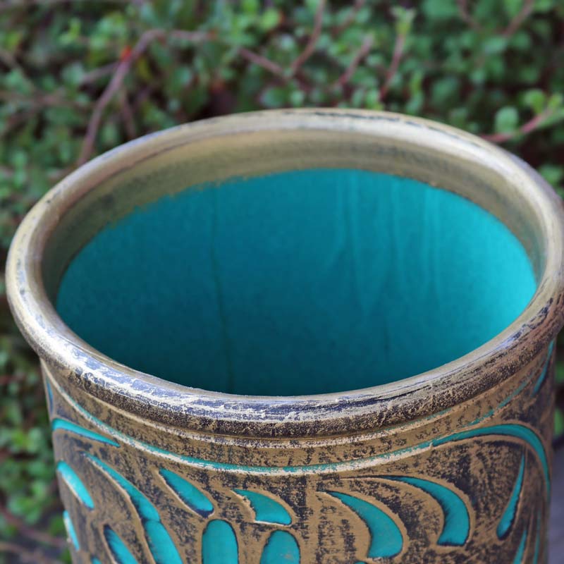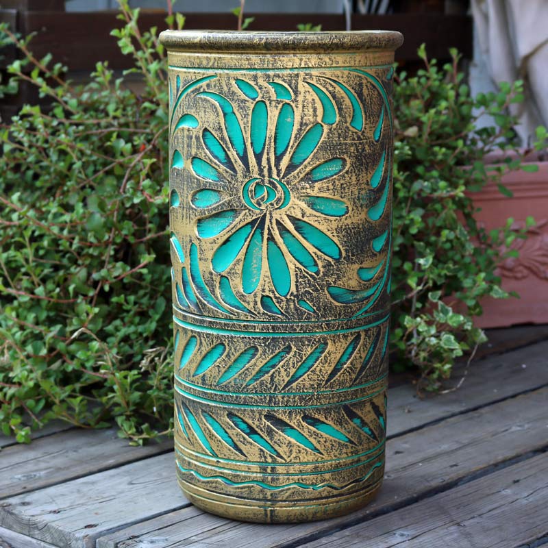 陶器 かさ立て イタリア製 アンブレラスタンド グリーン×ゴールド ストレート