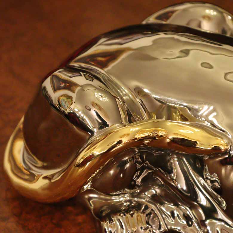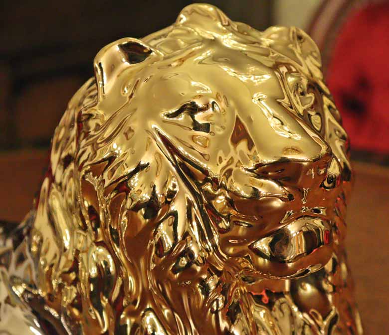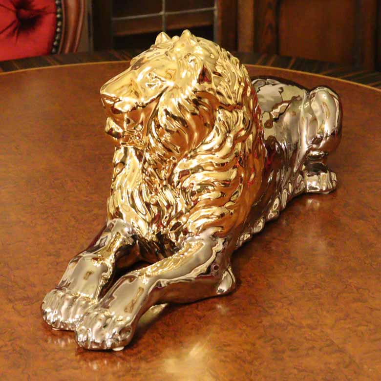 イタリア ライオン AHURA 陶器 置物 オブジェ 風水 縁起物 獅子 プラチナゴールド